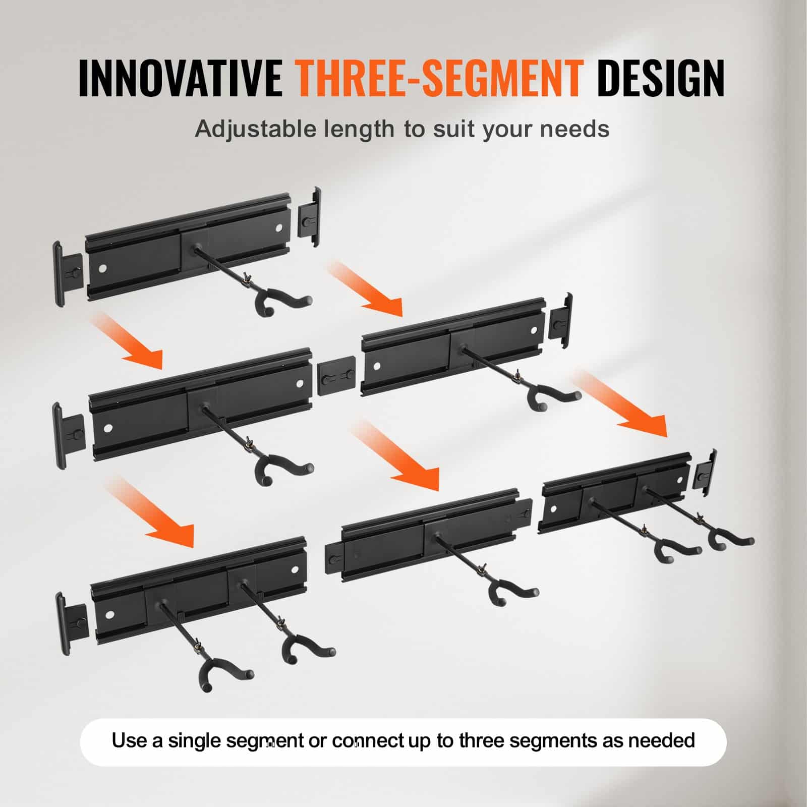 VEVOR 5-Space Guitar Stand, Hold Up to 5 Guitars, Wall-Mounted Multiple Guitars Display Foldable Rack with 270° Rotatable Hooks Aluminum Panels Installation Handle, for Guitar Acoustic Electric Bass
