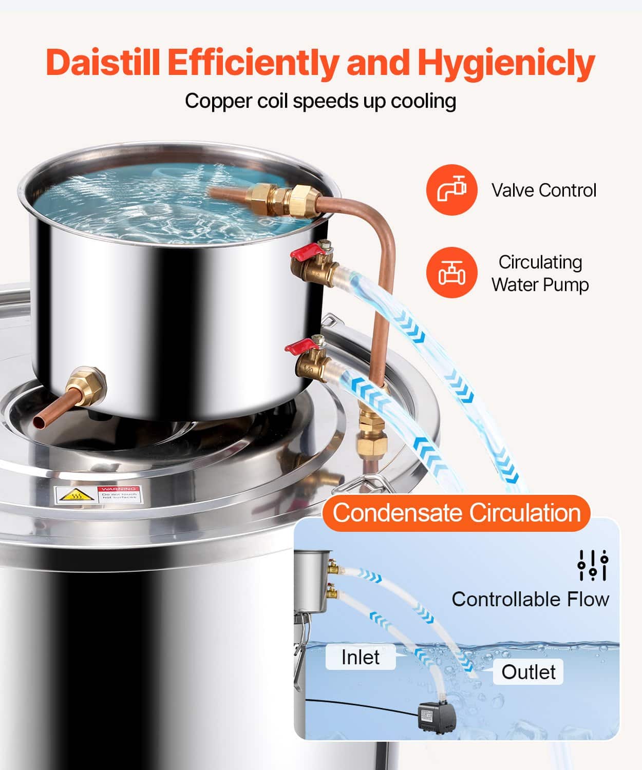 See destilleerimise komplekt sisaldab käärimine barrel ja jahutus pott, nii tehtud toidu-grade roostevabast terasest, tagades turvalise kontakt kogu pruulimise ja destilleerimise protsess, mistõttu lõplik toode sobib joomine meelerahu.