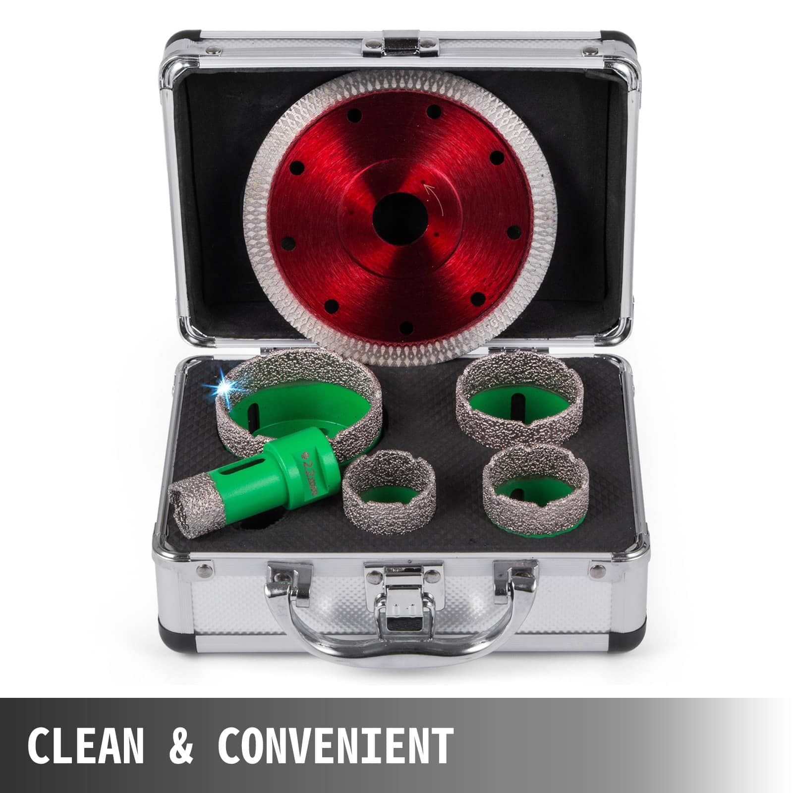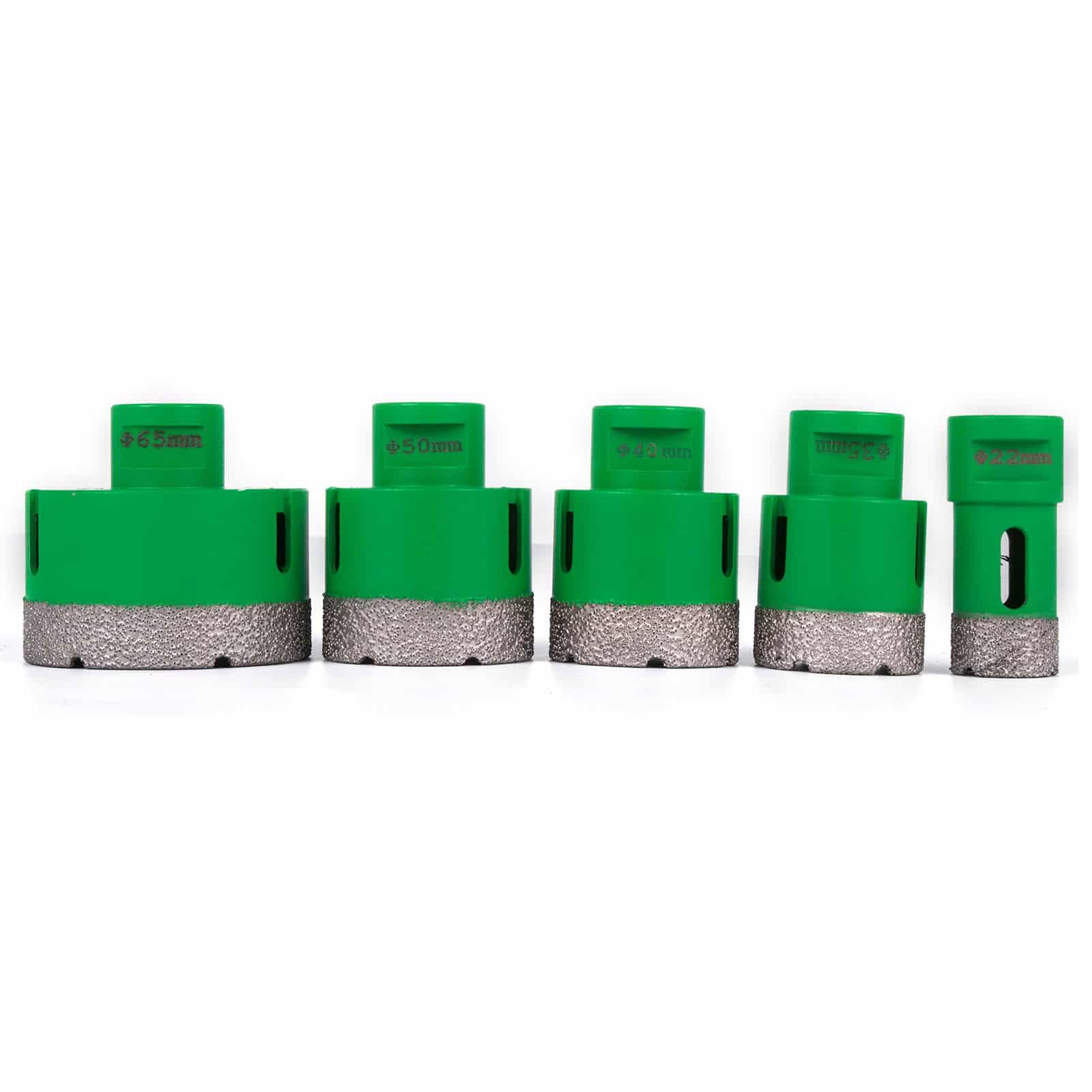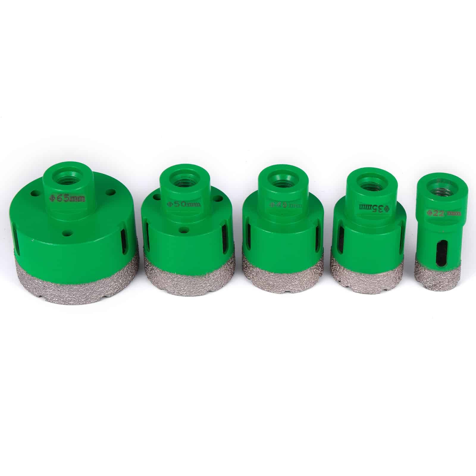 See brändi-uus professionaalne diamond drill bits komplekt, mille läbimõõt on 22/35/40/50/65 mm (0.87/1.4/1.6/2/2.5 -tolline) ja M14 keermega, pakub kiire, lihtne ja puhas lõigatud. Ei vaja vett hoiab oma töökoha puhtana.