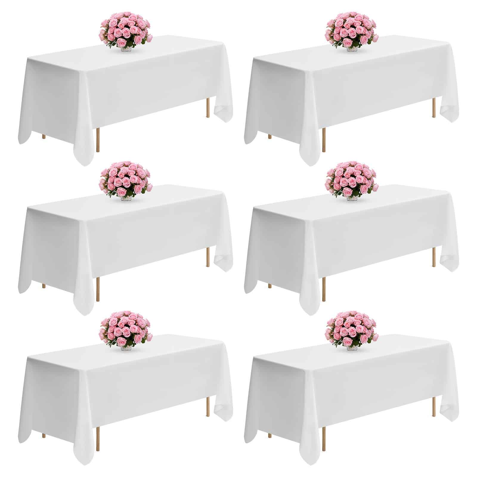 VEVOR White Tablecloths for Rectangle Tables, 6 Pack, 70 x 120 Inches, Reusable and Machine Washable Table Clothes, Wrinkle-Resistant Polyester Fabric Table Covers for Wedding, Party, Banquet