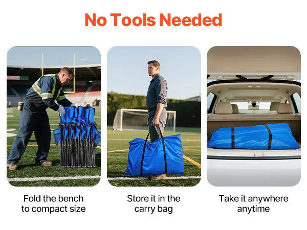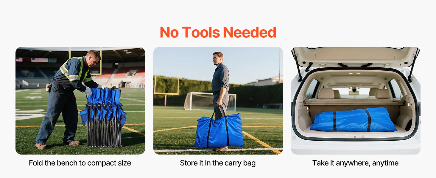 • Easy to Fold and Move: Our soccer bench seating is simple to transport, and its efficient storage design maximizes space utilization. Ideal for outdoor and indoor settings—sports fields, parties, gatherings, or commercial venues—it can be set up in just seconds for instant seating