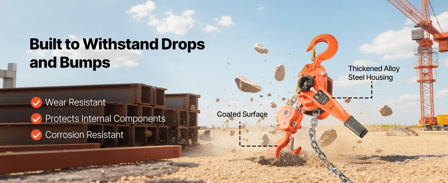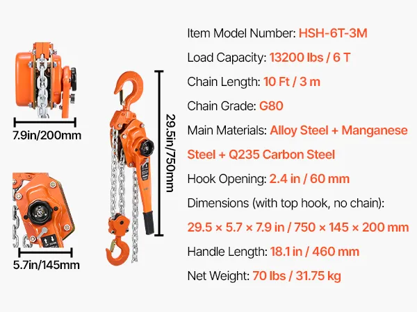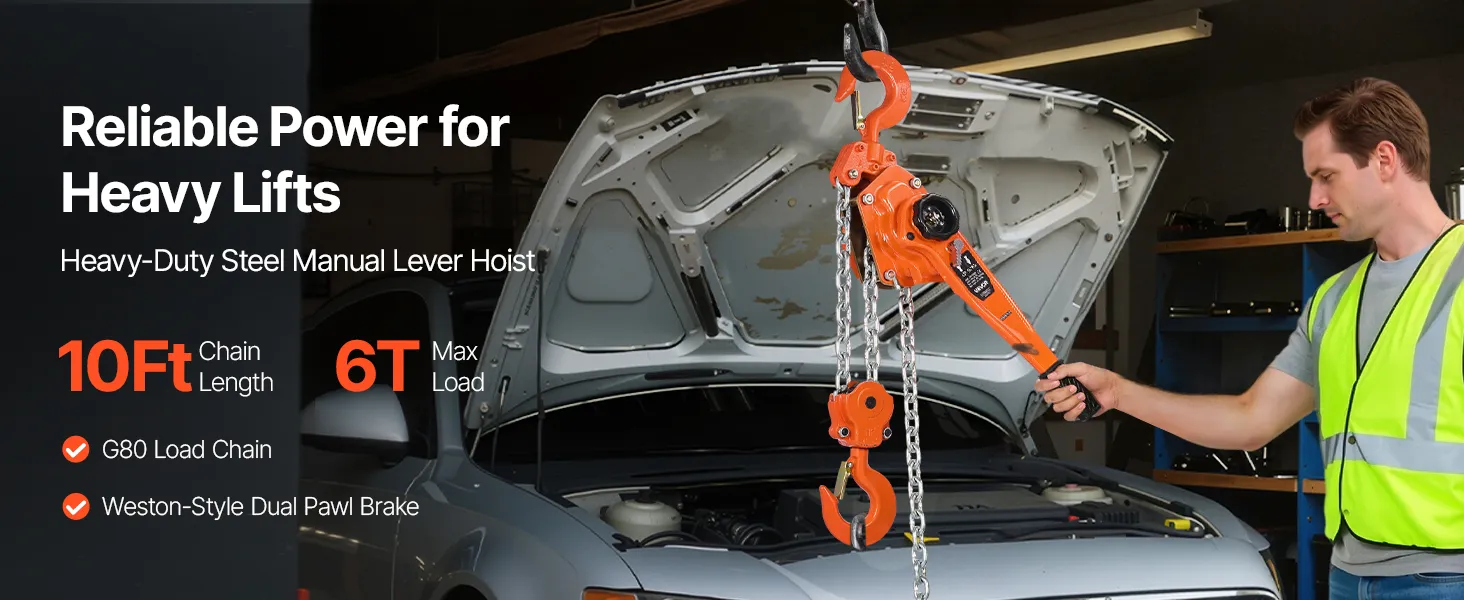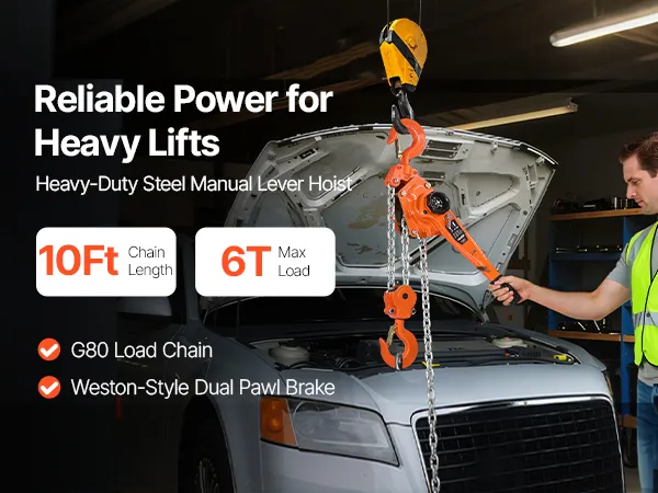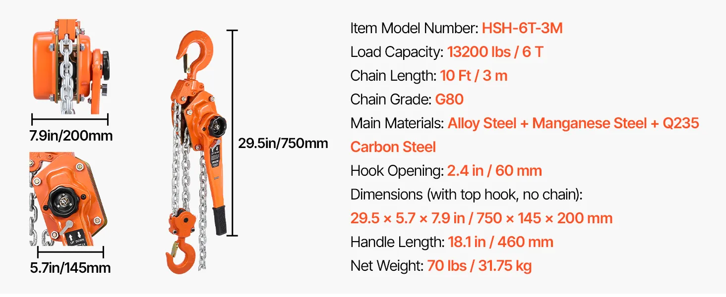 • 6T Max Load: This manual lever hoist features an all-steel construction that resists-impact and breakage, allowing one person to effortlessly move loads up to 6T / 13200 lbs. Ideal for dragging fallen trees, lifting steel beams, machinery, engine parts