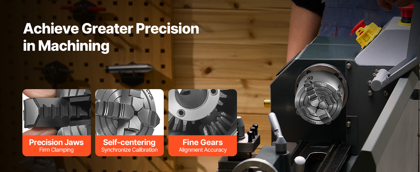 Crafted from premium HT300 cast iron, jaw hardness ≥53 HRC for long-lasting durability and rust resistance. The lathe chuck provides high-precision clamping without calibration. Featuring 0.86 in I.D and 3 in O.D, it handles clamping ranges from 0.1 in to 3.15 in with ease.