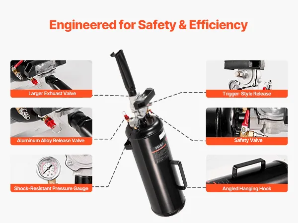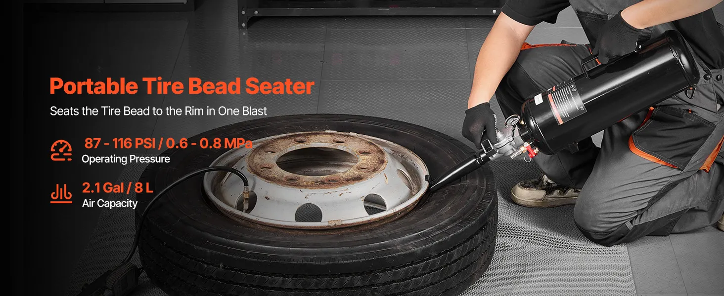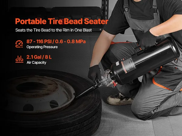 VEVOR Portable Tire Bead Seater, 2.1 Gal / 8 L Air Bead Blaster, Handheld Tire Inflator Tool, 87-116 PSI Operating Pressure, Trigger Seating Inflator for Car, Compact SUV, Light Truck, E-Bike, RV, ATV