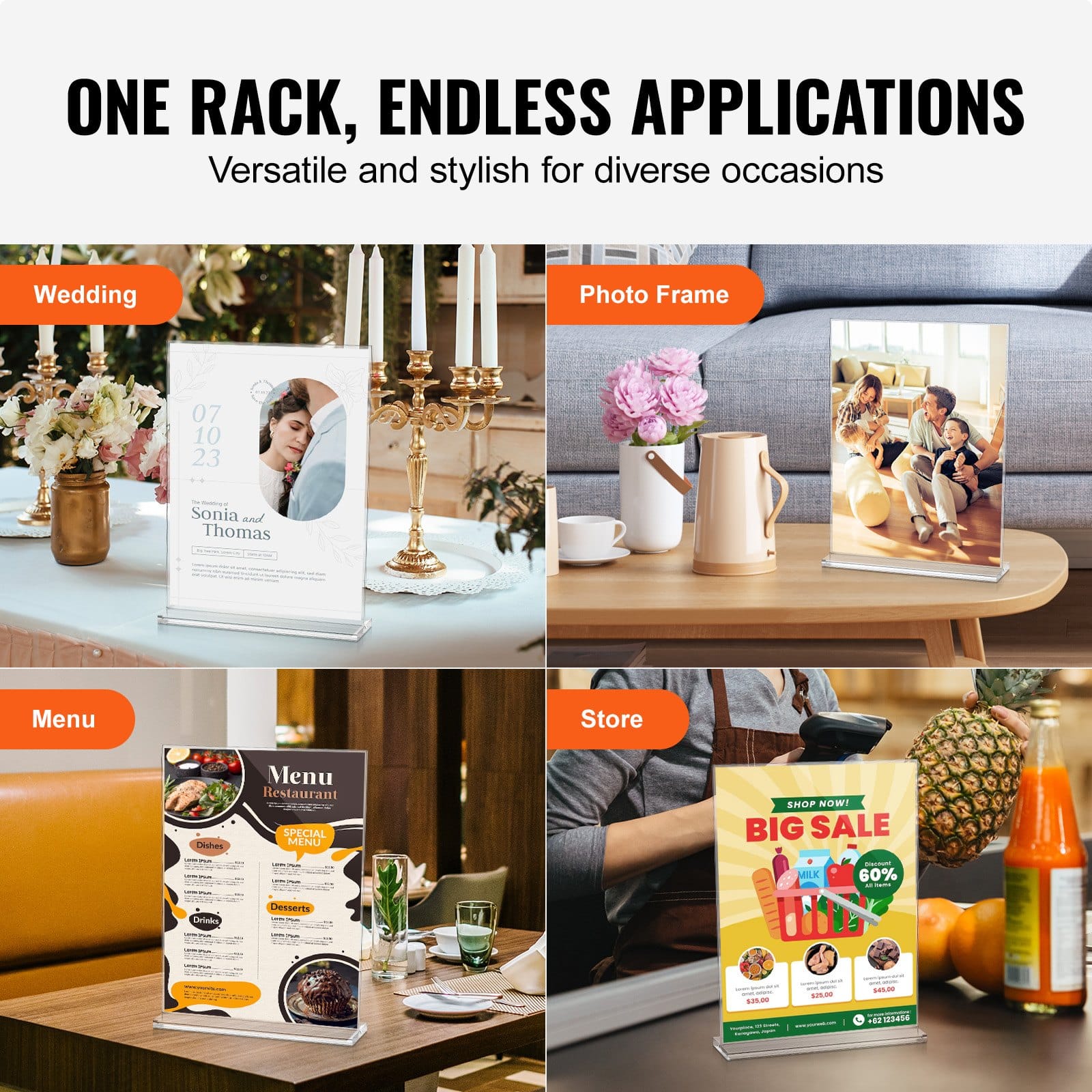 Valida VEVOR akrüül tähise omanik restoranid, baarid, messid, pulmad, ja rohkem. Meisterdatud suur-läbipaistvust akrüül, et VEVOR 6-pack akrüül tähise omanik tagab vastupidavuse ja nähtavuse oma brošüürid ja dokumendid, meelitades rohkem tähelepanu oma brošüürid.