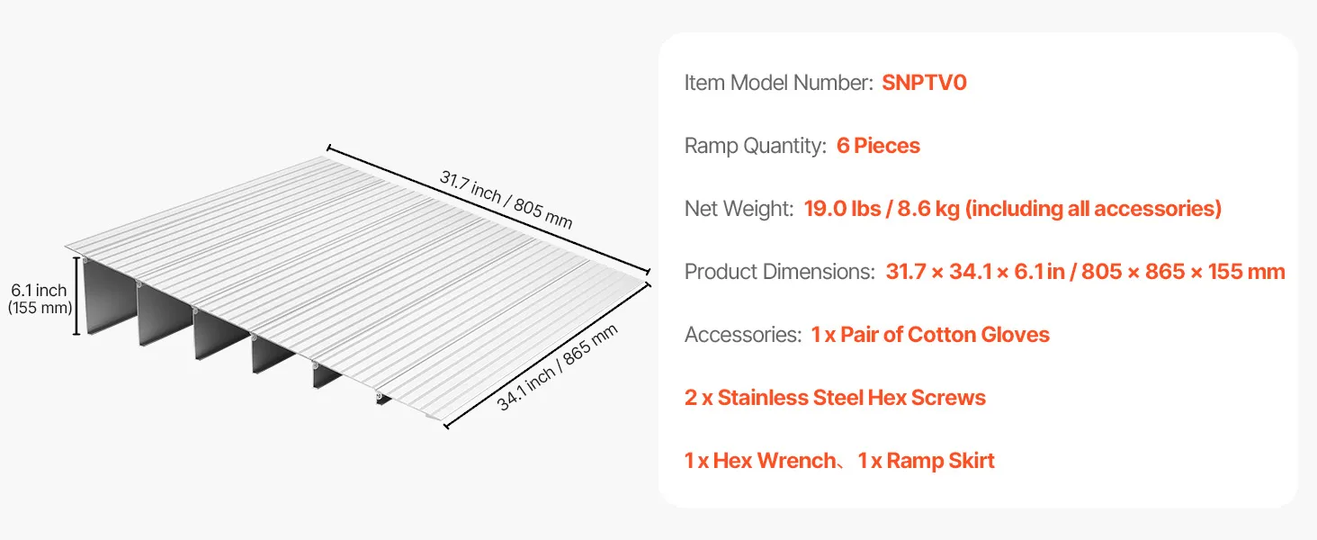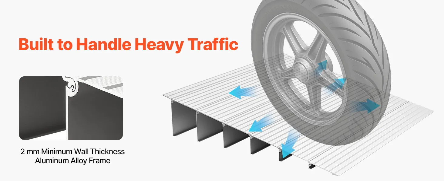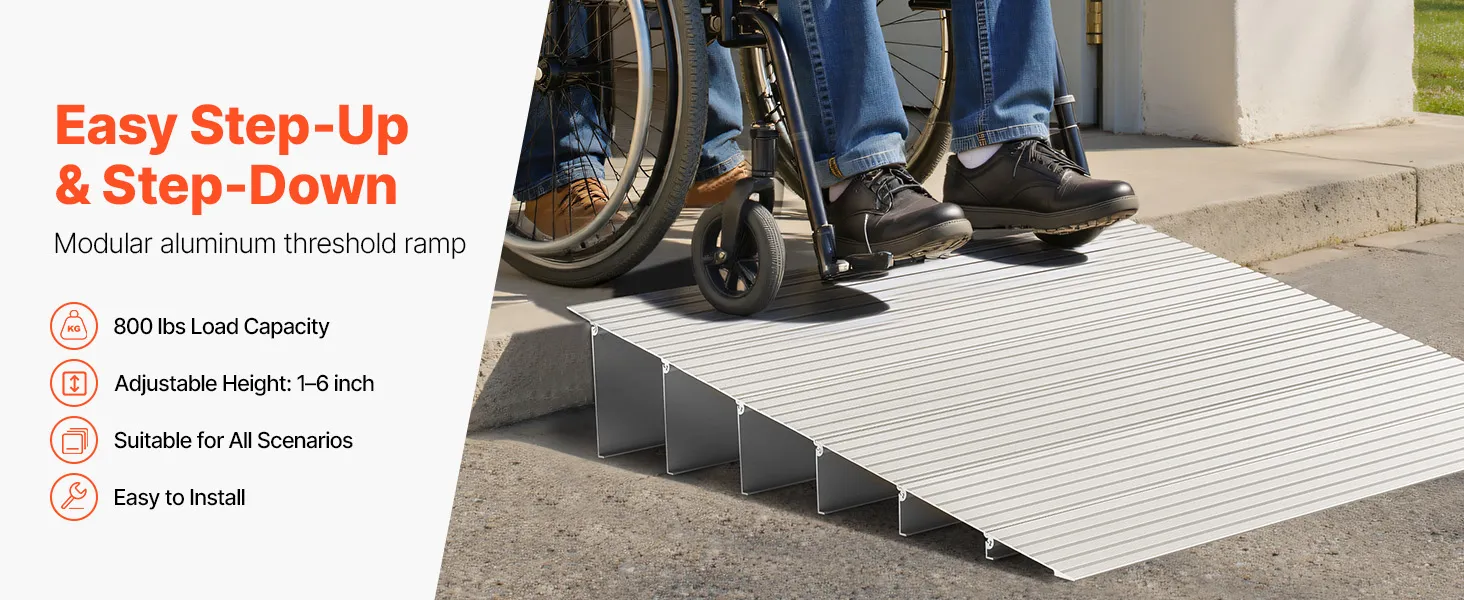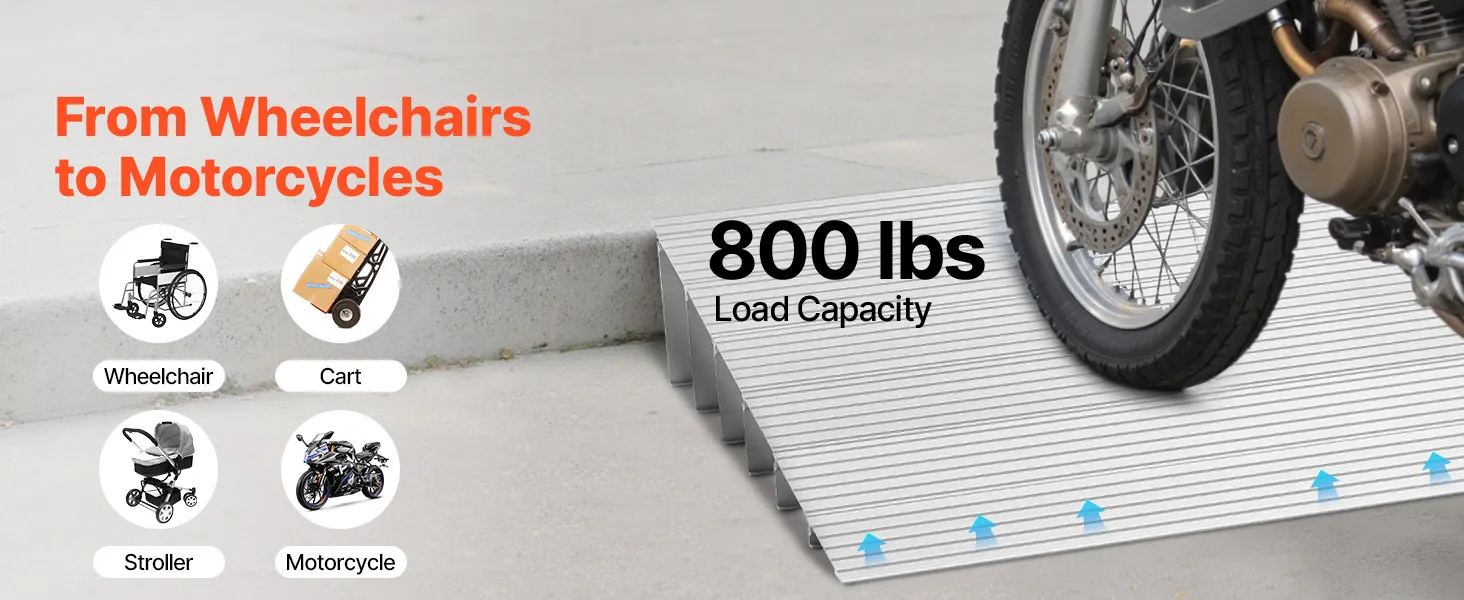 Place the front door ramp on thresholds, garage ramps, or curbs and roll with ease! The 6-inch rise fits greatly so wheels glide smoothly without bumps or getting stuck.