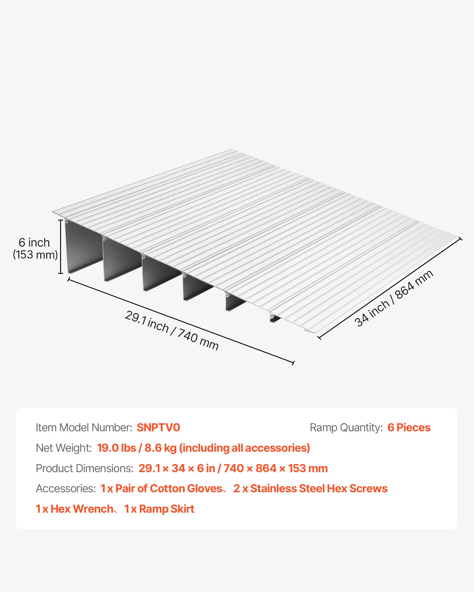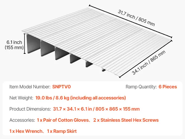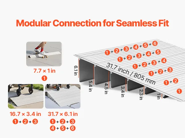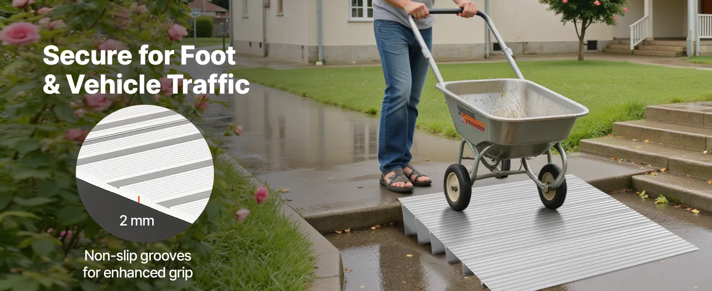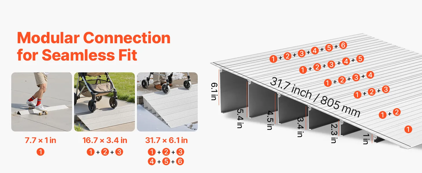 Place the front door ramp on thresholds, garage ramps, or curbs and roll with ease! The 6-inch rise fits greatly so wheels glide smoothly without bumps or getting stuck.