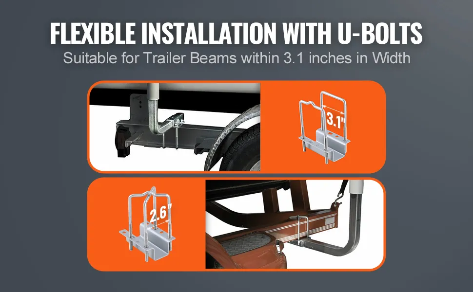 Need kaks paigaldamise meetodid sobivad haagiste erineva raami laius. Uuendatud M8 paksenenud kõrge tõmbetugevusega terasest materjal tagab kindla ja stabiilse paigaldamine ilma liigne liikumine, ega deformeerunud.