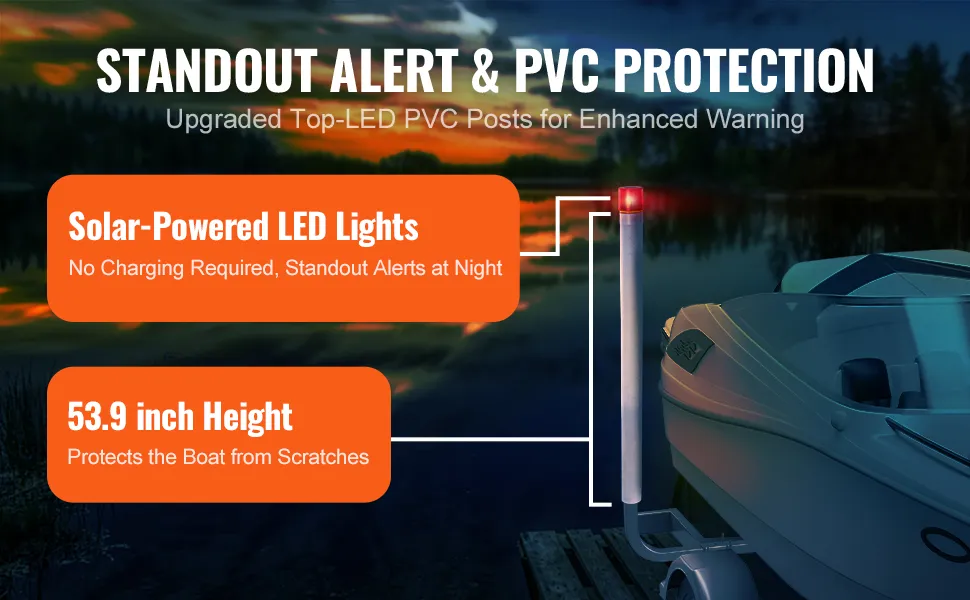 VEVOR Boat Trailer Guide, 1.57M with LED Light Trailer Guide Poles, 2PCS Rustproof Galvanized Steel Trailer Guide ons, Trailer Guides with PVC Pipes, for Ski Boat, Fishing Boat or Sailboat Trailer