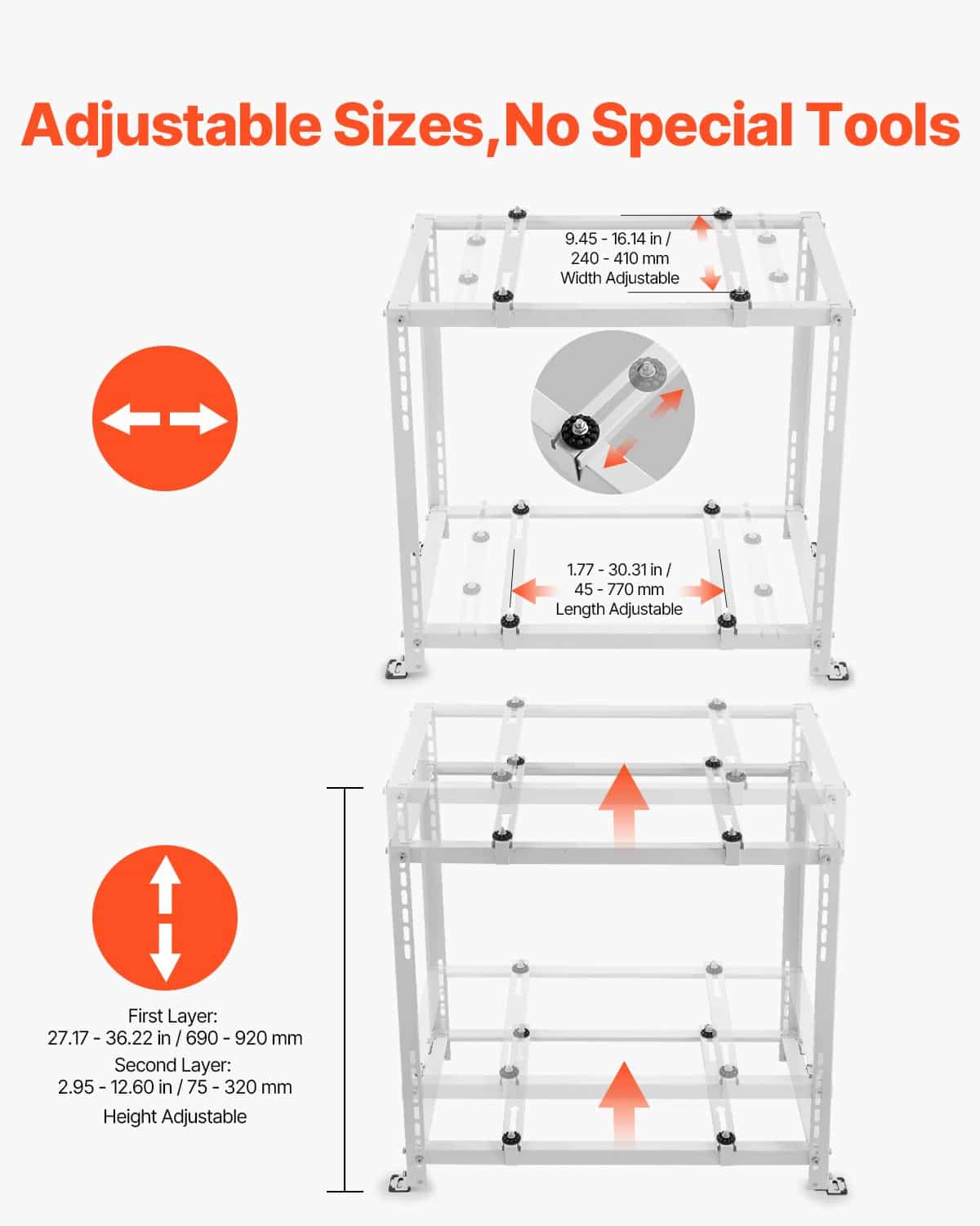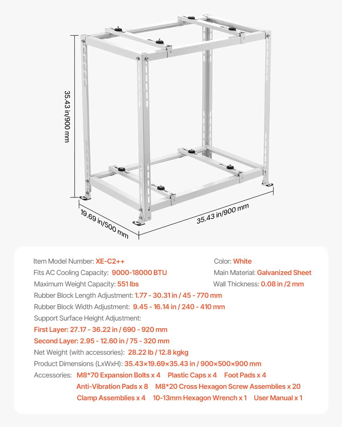 - 35.43 x 19.69 x 35.43 in / 900 x 500 x 900 mm