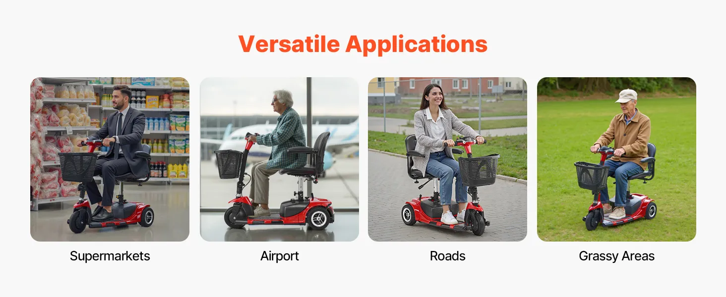 Whether you're navigating airports, shopping in supermarkets, or cruising around the street, this electric mobility scooter adapts perfectly. Your reliable mobility companion for smooth, comfortable rides anytime, anywhere.