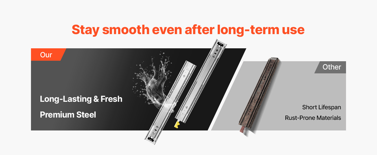 500 £ kandevõime, see sahtli slaidid on valmistatud kõrge kvaliteediga terasest ja see on rooste ja korrosiooni-vastupidavad ja ehitatud nii, et viimane, mis vastab kõigile teie kandvate vajadustele.