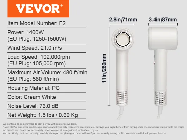 Meie suur-kiirus föön tegutseb minimaalse müra, hoides detsibelli tasemel või allpool 76, tagades teie pere naudib katkematu, rahulik magada. Selle kompaktne ja kaasaskantav disain muudab selle ideaalseks reisimine, võimaldades teil säilitada oma ideaalne välimus iganes sa minna.