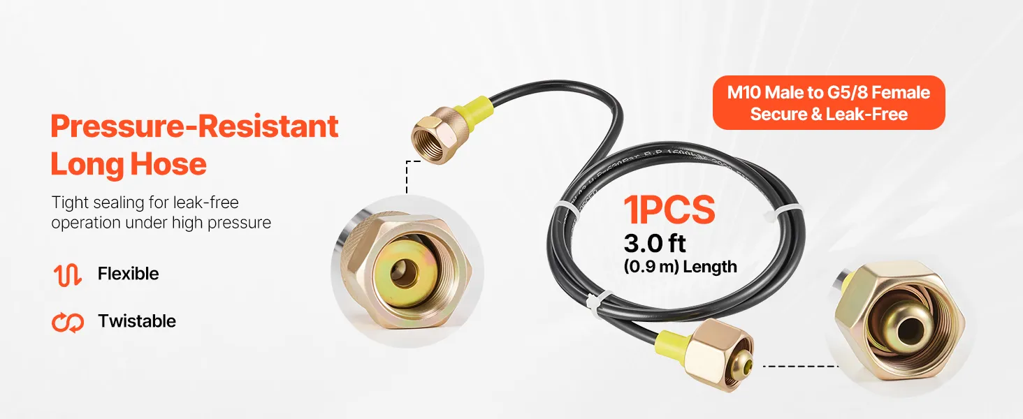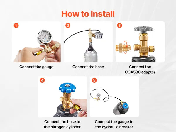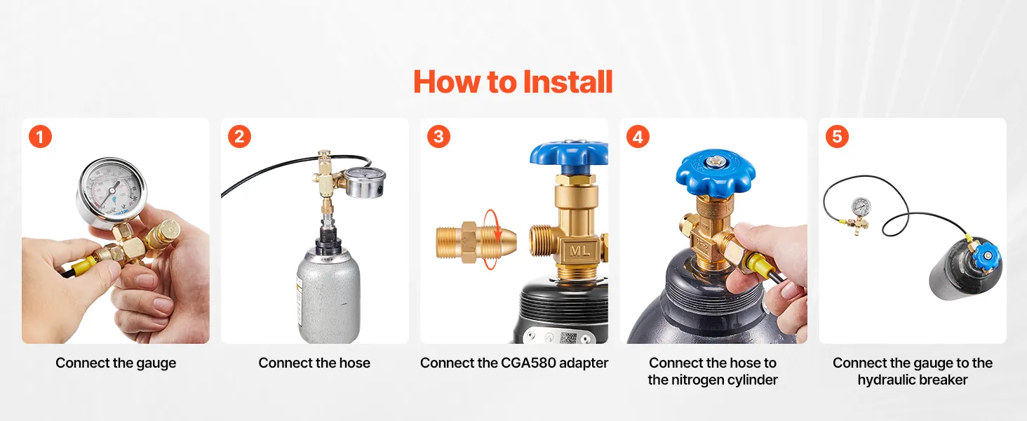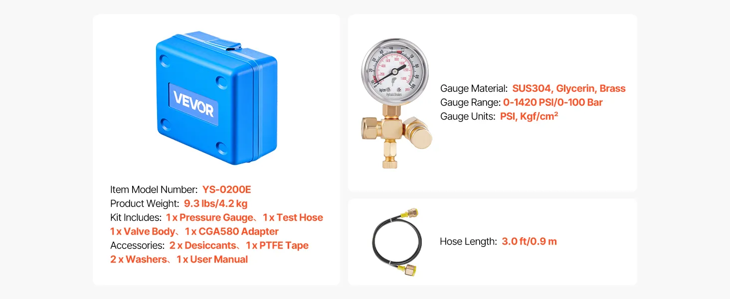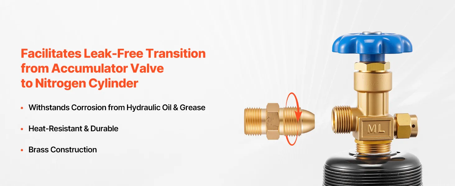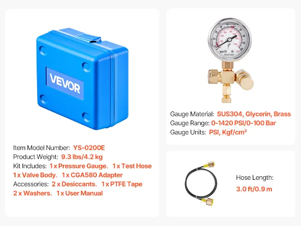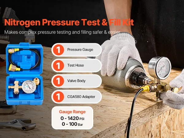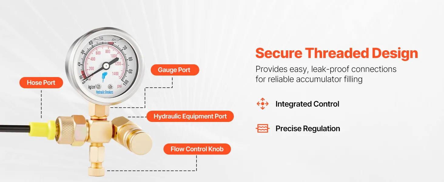 VEVOR Hydraulic Nitrogen Accumulator Charging Kit, 0-100 Bar Nitrogen Fill Kit, Pressure Test System with 1 Pressure Gauge, 1 Gas Hose, 1 Valve Body and 1 CGA580 Adapter for Construction Machinery