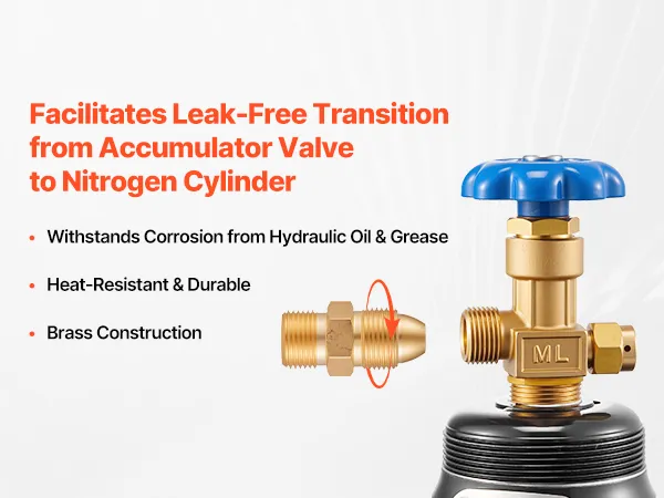 This hydraulic pressure test kit handles single-point testing in one compact set. It includes a nitrogen charging valve, a mechanical pressure gauge, and an adapter fitting. Designed for routine pressure inspections of low-pressure accumulators, it also ensures timely maintenance.