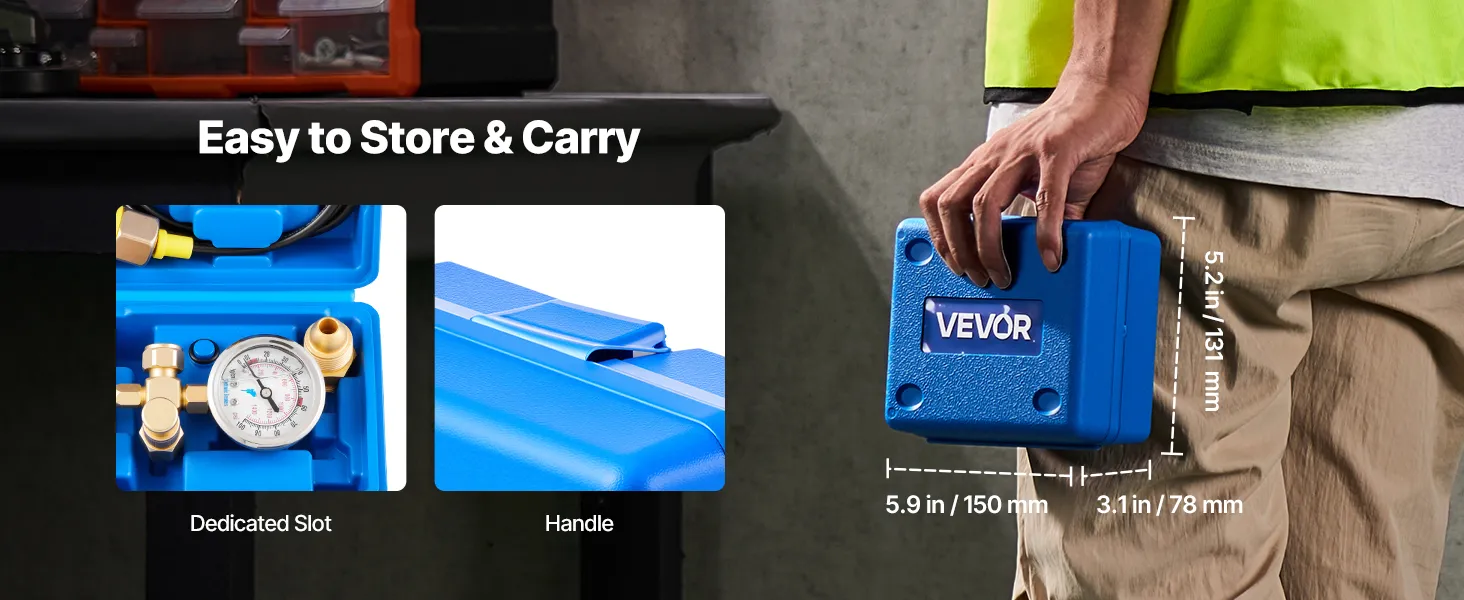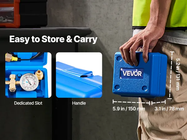 The hydraulic pressure gauge kit includes 2 desiccants inside the case to stop humidity buildup and keep the tools corrosion-free.