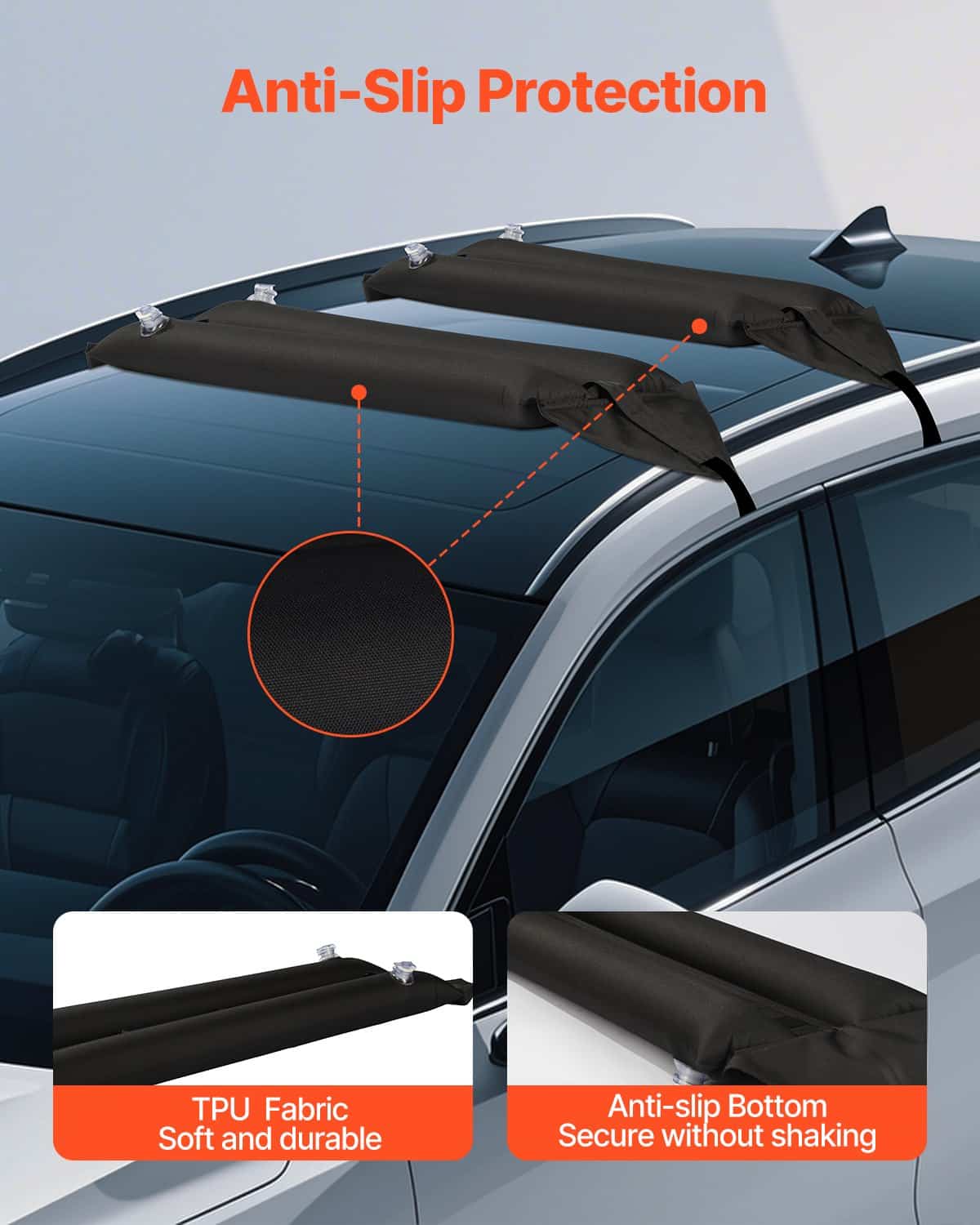 Valmistatud 600D TPÜ kangast, need auto katuseraam padjad on pehme, kulumiskindel ja veekindel, pakkudes suurepärast vastupidavus ja pikem eluiga, mis vastavad enamiku kasutajate vajadused.