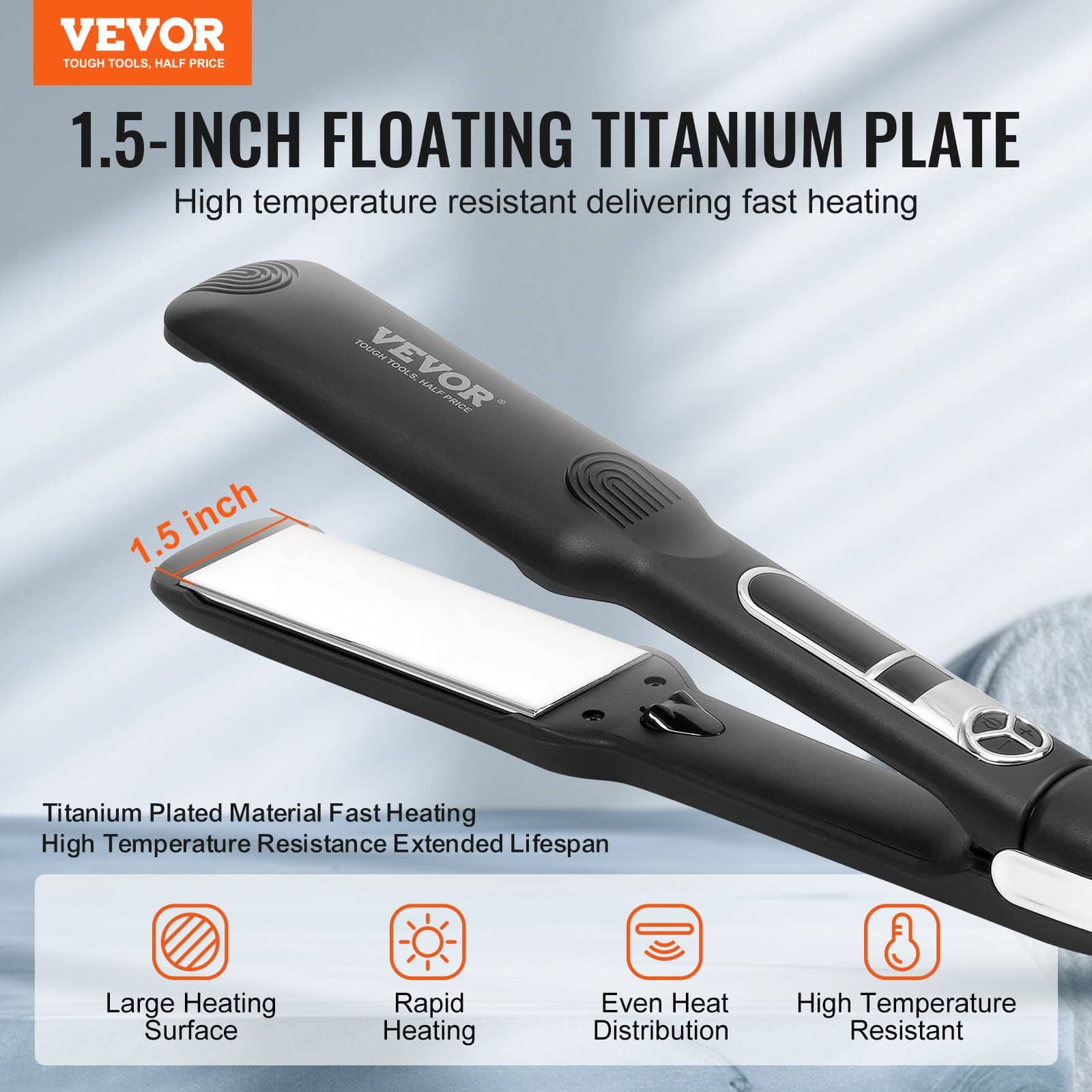 VEVOR Hair Straightener, 1.5-inch Titanium Flat Iron, Negative Ions Hair Straightener Flat Iron with LCD Display and 25 Temp Levels - 210°F to 450°F, Fast Heating Hair Iron for Salon Home Travel Use