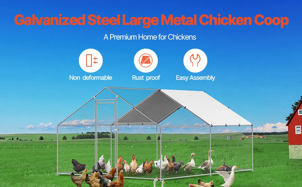Our metal chicken coop is made of galvanized steel pipes, tested against salt spray to prevent rusting. It provides a secure and cozy high-quality home for your chickens, no matter rain or shine.