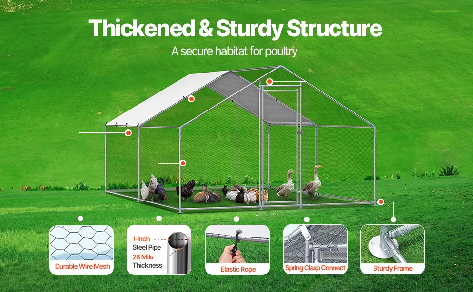 1" paksusest terasest torud ja kuuskantpea kaitsev võre, see jalutuskäik chicken run pakub tugeva toe ja kaitse, tagades kodulindude saab hulkuma vabalt turvalises keskkonnas.