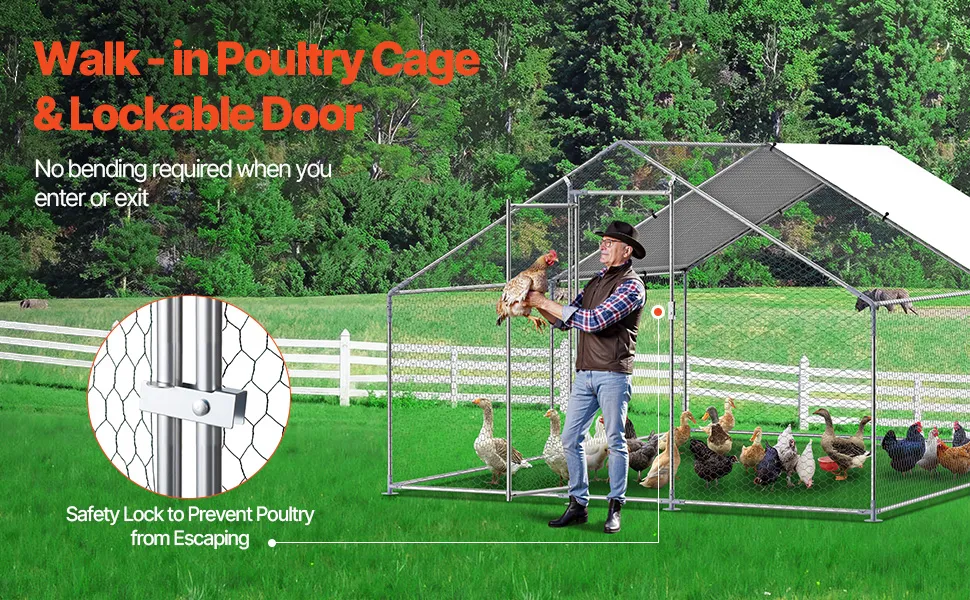 Featuring avar uksed, metallist chicken run võimaldab hõlpsat juurdepääsu ilma nurga alla. Turvaline lukk disain takistab kodulindude põgenemist, muutes oma põllumajanduse logima kiusame tasuta.