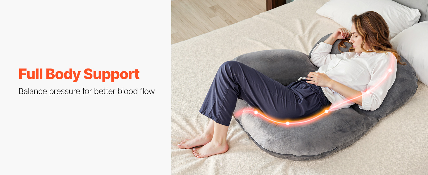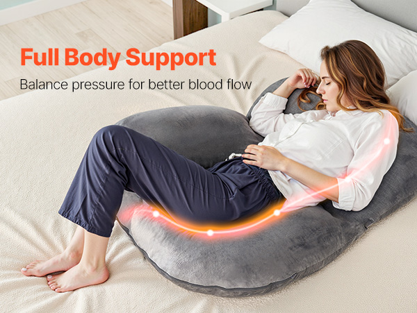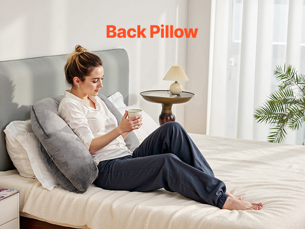 VEVOR Reading Pillow, Large Size U-Shaped Sitting up Pillow, Washable Bed Pillow with Soft Velvet, Bed Rest Back Pillow, Ideal for Reading, Gaming, Resting, Working, Grey