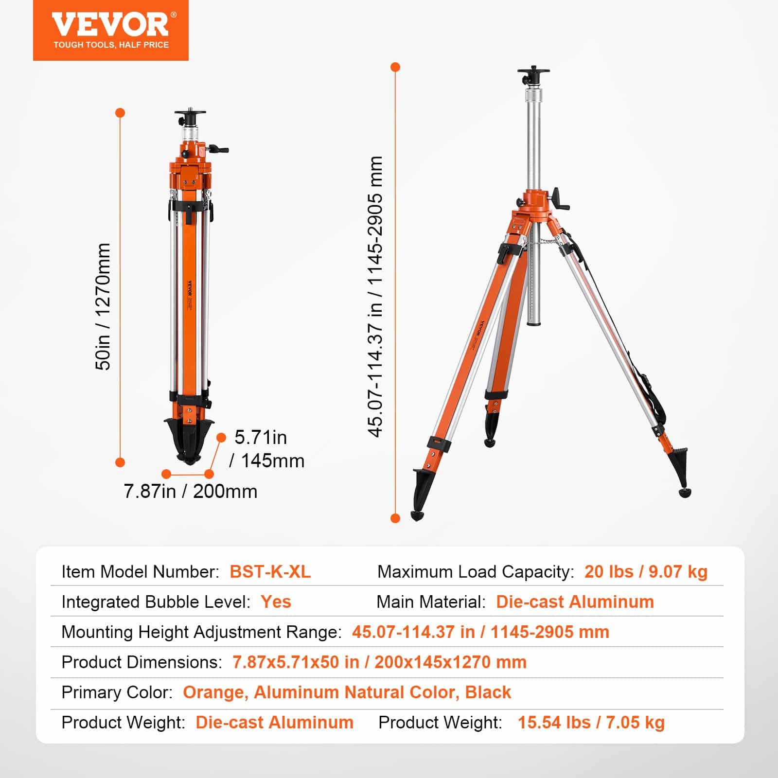Kui VEVOR statiiv on valmistatud premium alumiiniumist, mistõttu on tugev ja vastupidav pikaajaliseks kasutamiseks ilma kanda. Kõrgus on reguleeritav, et kohtuda erinevate mõõtmine vajadustele. Kooskõlas joon-laser, punkt laserid ja laser distance meetrit, mida kasutatakse laialdaselt ehituses ja sisekujunduses.
