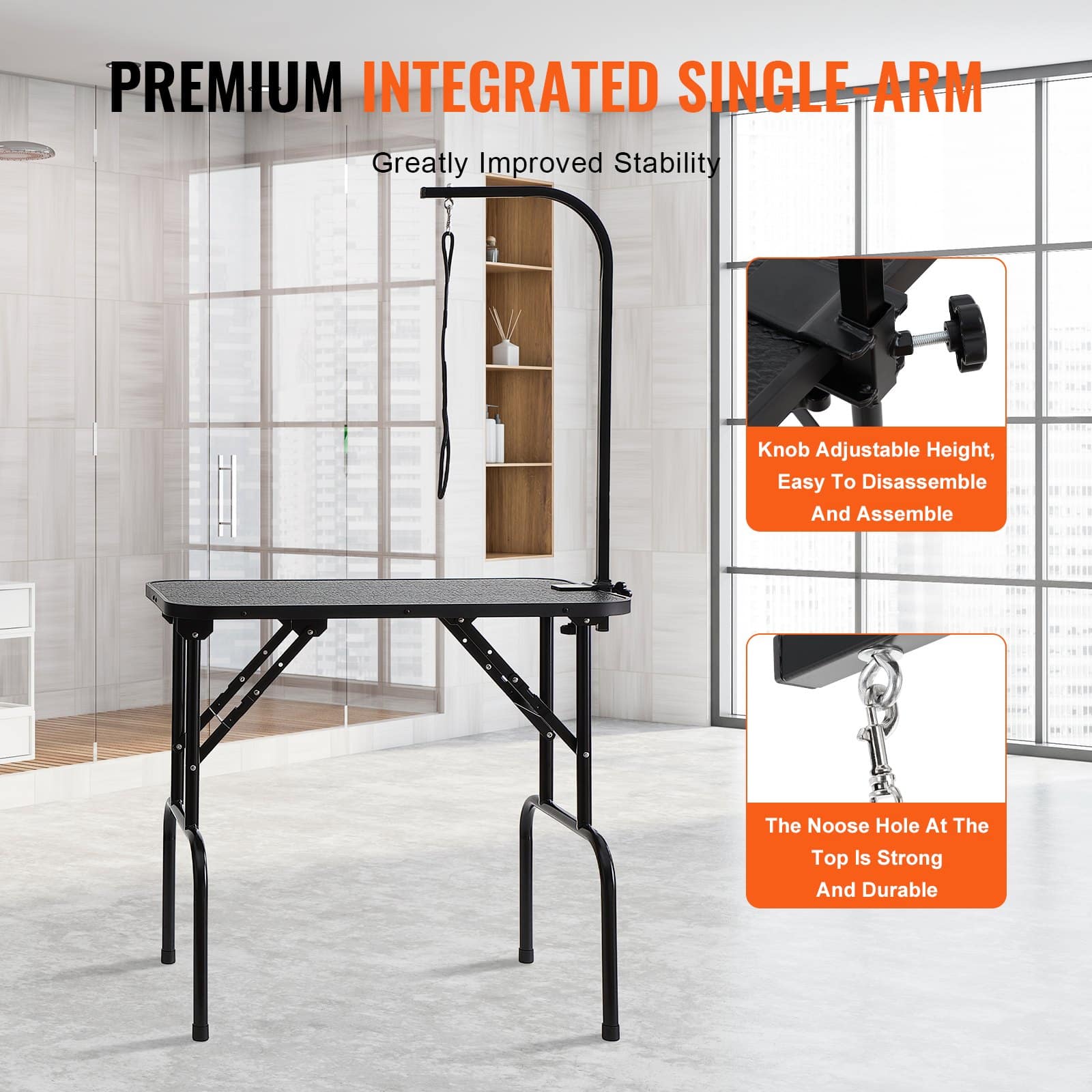 VEVOR Pet Grooming Laud Arm koos klambriga, 808 x 460 mm koerte hooldusjaam, kokkupandavad lemmikloomade hooldusalus keskmistele ja väikestele koertele, tasuta istumisvaba kummihoidja koos hooldusaasaga, kandevõimega 99,8 kg