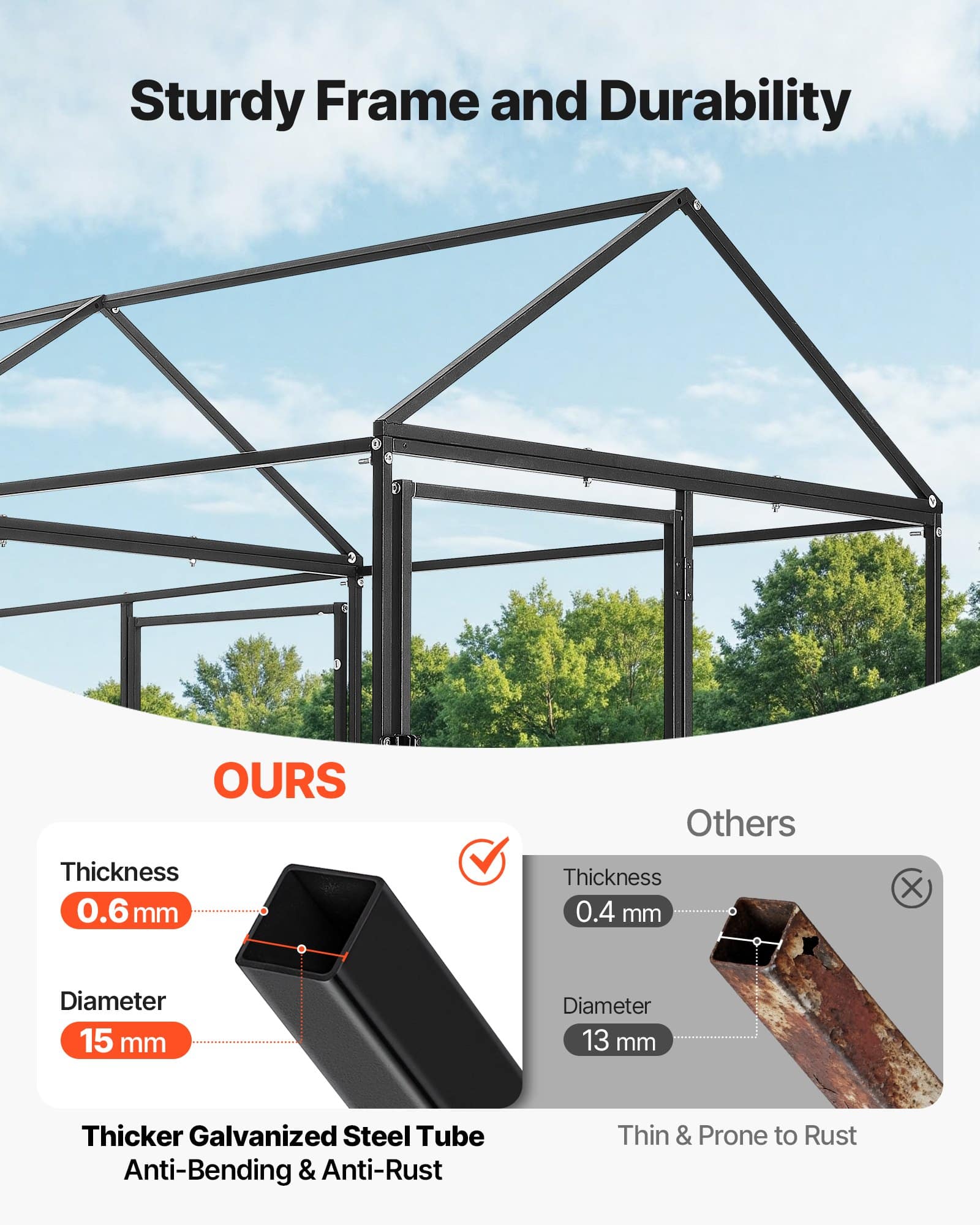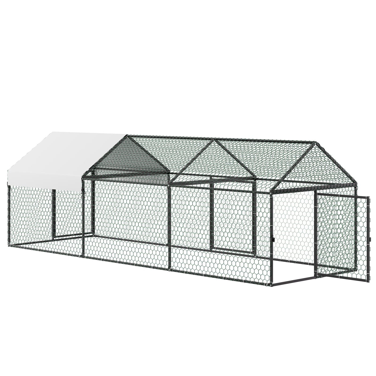 VEVOR Metal Chicken Coop for 6-8 Chickens, 1 x 3 x 1 m, Small Chicken Cage with Waterproof Cover & 3 Doors, Spire Roof Poultry Run Compatible with Wooden Coops, for Rabbit Hen Goose Duck