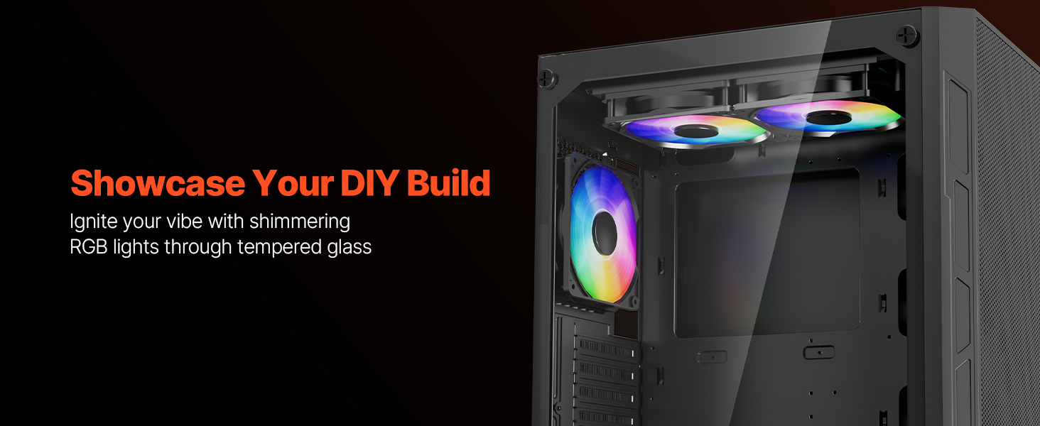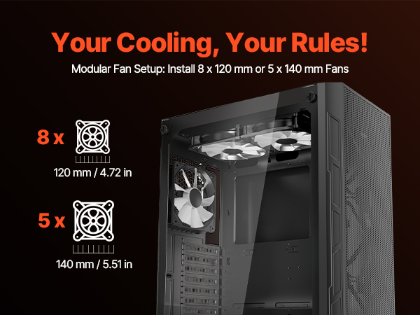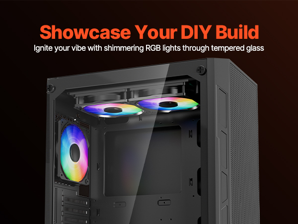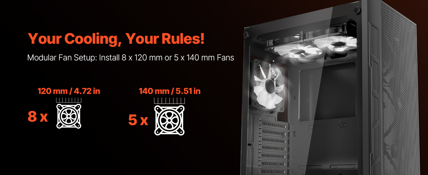 VEVOR kesk-torni mänguarvuti korpus karastatud klaasiga, 3×120 mm ARGB ventilaatorit, ATX/M-ATX/ITX, GPU kuni 320 mm