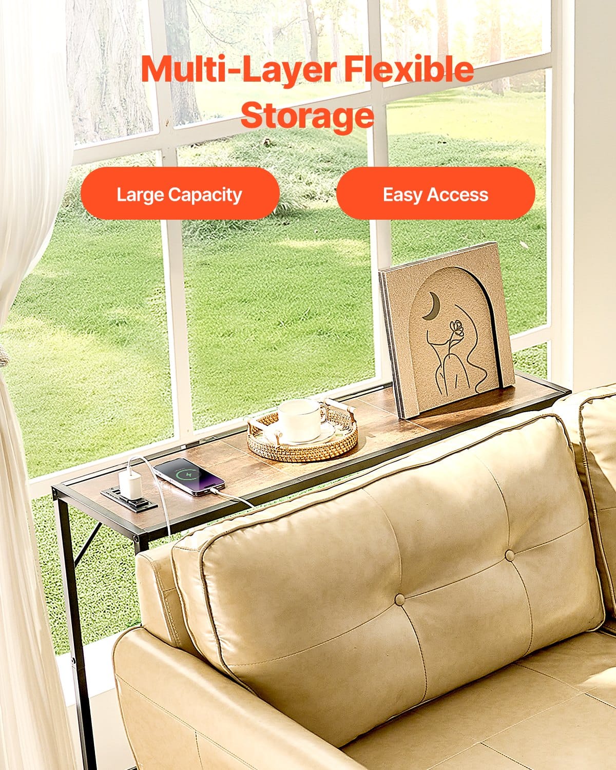 Tired of unused corners? This narrow console sofa table fits ideally in tight spaces, offering room for phones, decor, keys, hats, and more, making your daily life more organized and convenient.
