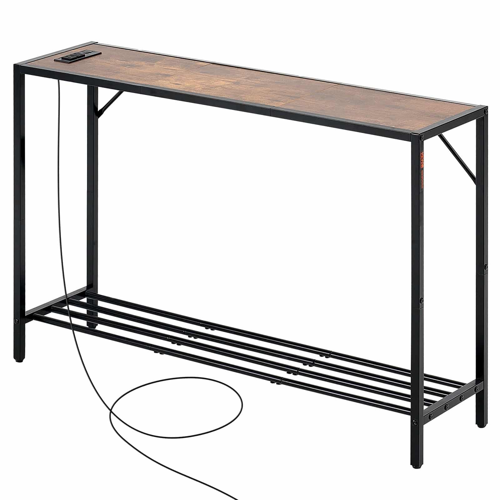 VEVOR Narrow Console Sofa Table, 41.7” Behind Couch Table with Power Outlets, 2-Tier Long Entryway Table, Narrow Sofa Table with Metal Frame and Charge Station, for Entryway, Hallway, Living Room