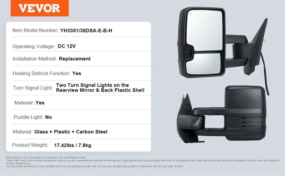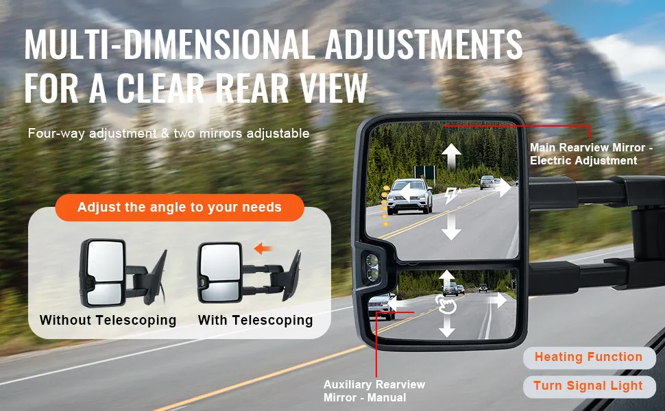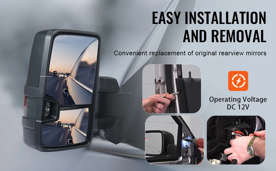 • Vehicle Compatibility: Our towing mirrors are tailored for Chevrolet Silverado (2007-2014), GMC, and Cadillac models. No worries about mismatched parts here – our mirror set is designed to blend seamlessly with your vehicle, ensuring a snug fit that won’t wobble on the road.