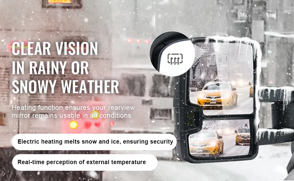 • Kokkupandavad ja Soojendus Funktsioonid: Need veoauto peeglid on mõeldud käsitsi teleskoop kokkuklapitavad funktsionaalsust, mis teeb ladustamise imelihtne ja hõlbustada teekonda läbi kitsas. Kütte-funktsioon tagab kiire eemaldamise külm või udu kristall-selge visioon, isegi vihmane ja lumise päeva jooksul.