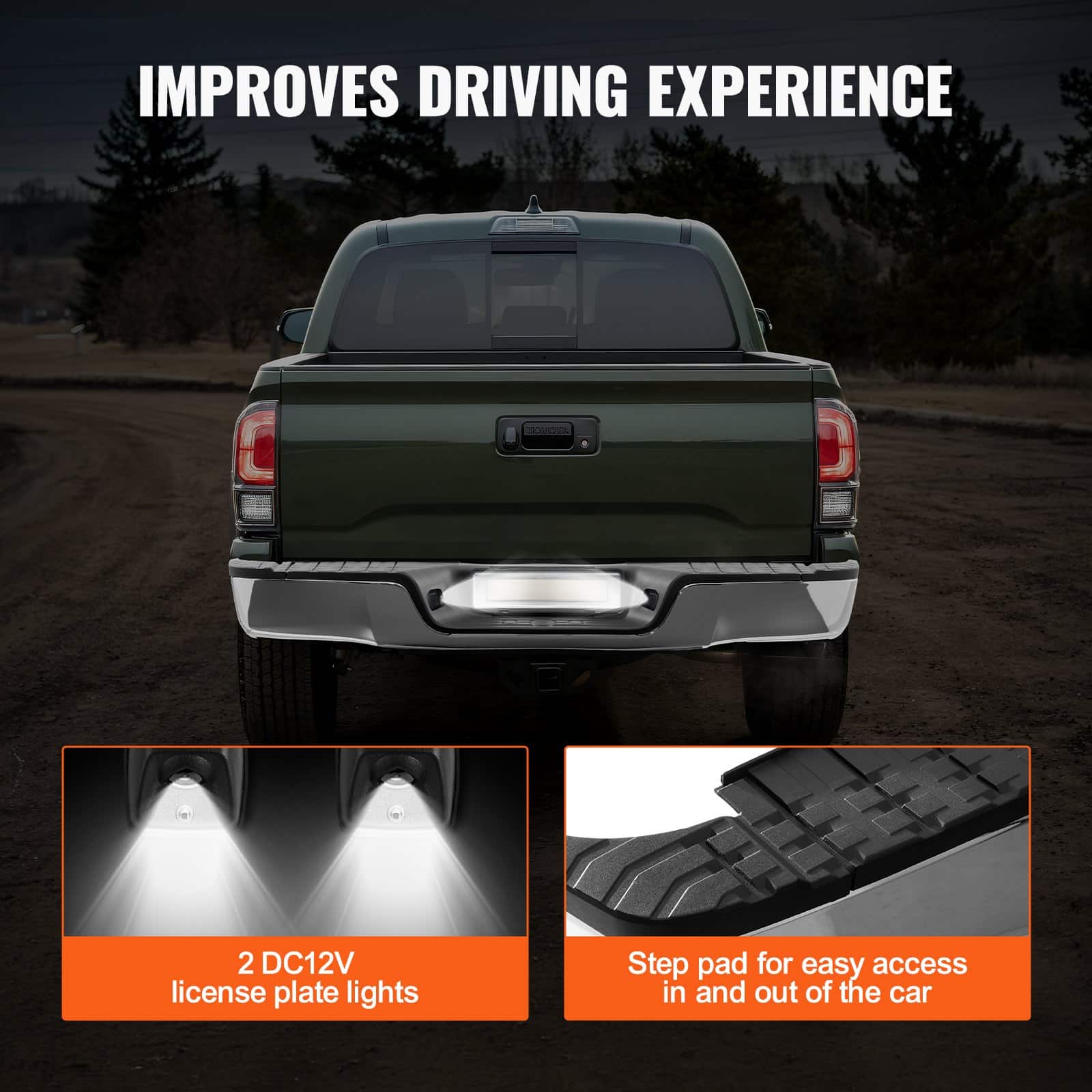 VEVOR Rear Step Bumper, Compatible with 2007-2013-Toyota Tundra, Chrome Steel Back Bumper, Assembly Replacement Rear Bumper with License Plate Light and Step Pad, without Sensor Holes, for TO1103117