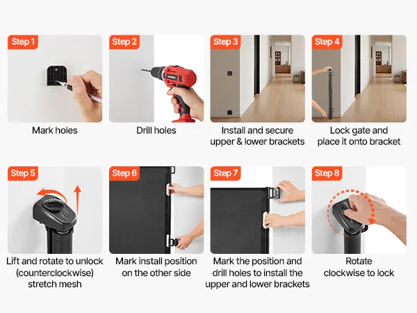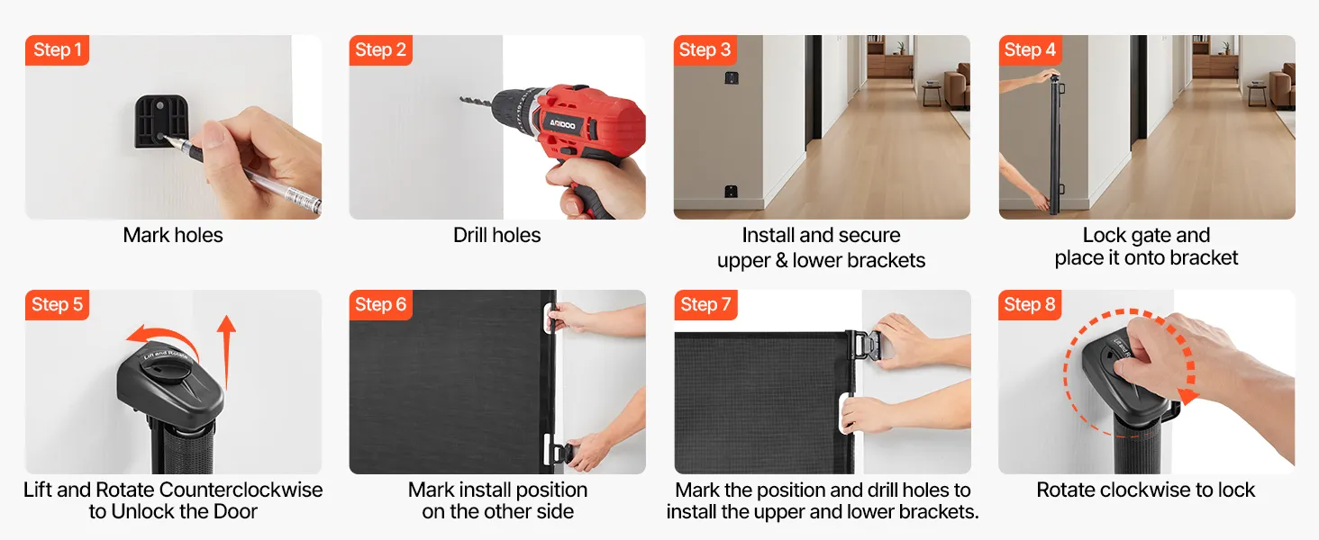 A: Yes, this gate requires drilling to securely install the brackets on both sides. It is not suitable for drywall or metal surfaces.