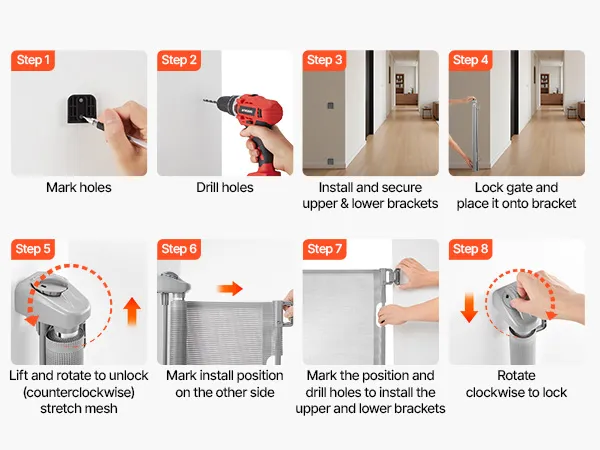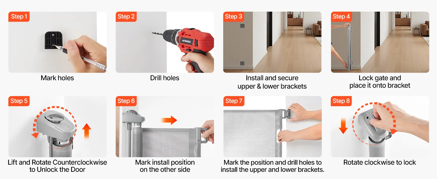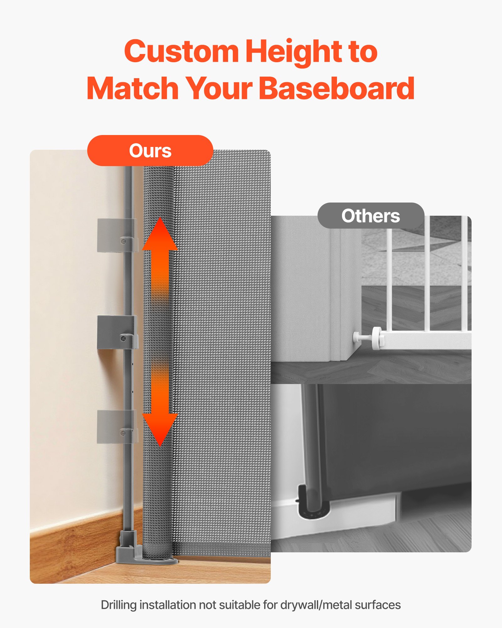 A: Yes, this gate requires drilling to securely install the brackets on both sides. It is not suitable for drywall or metal surfaces.