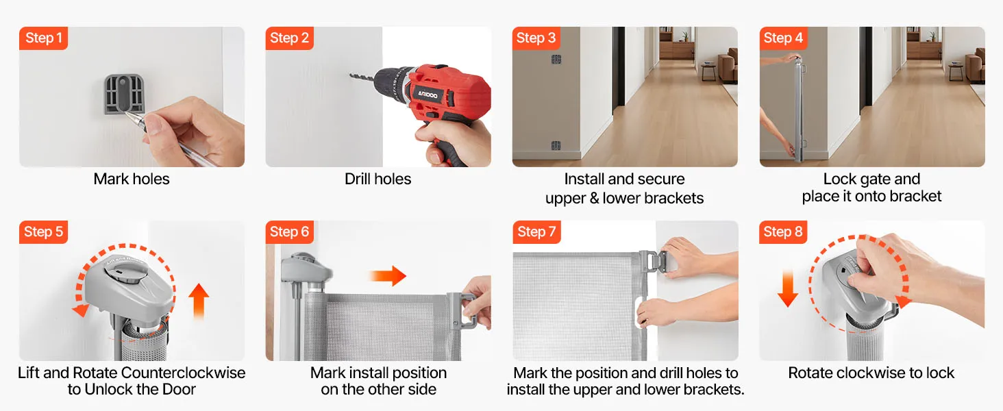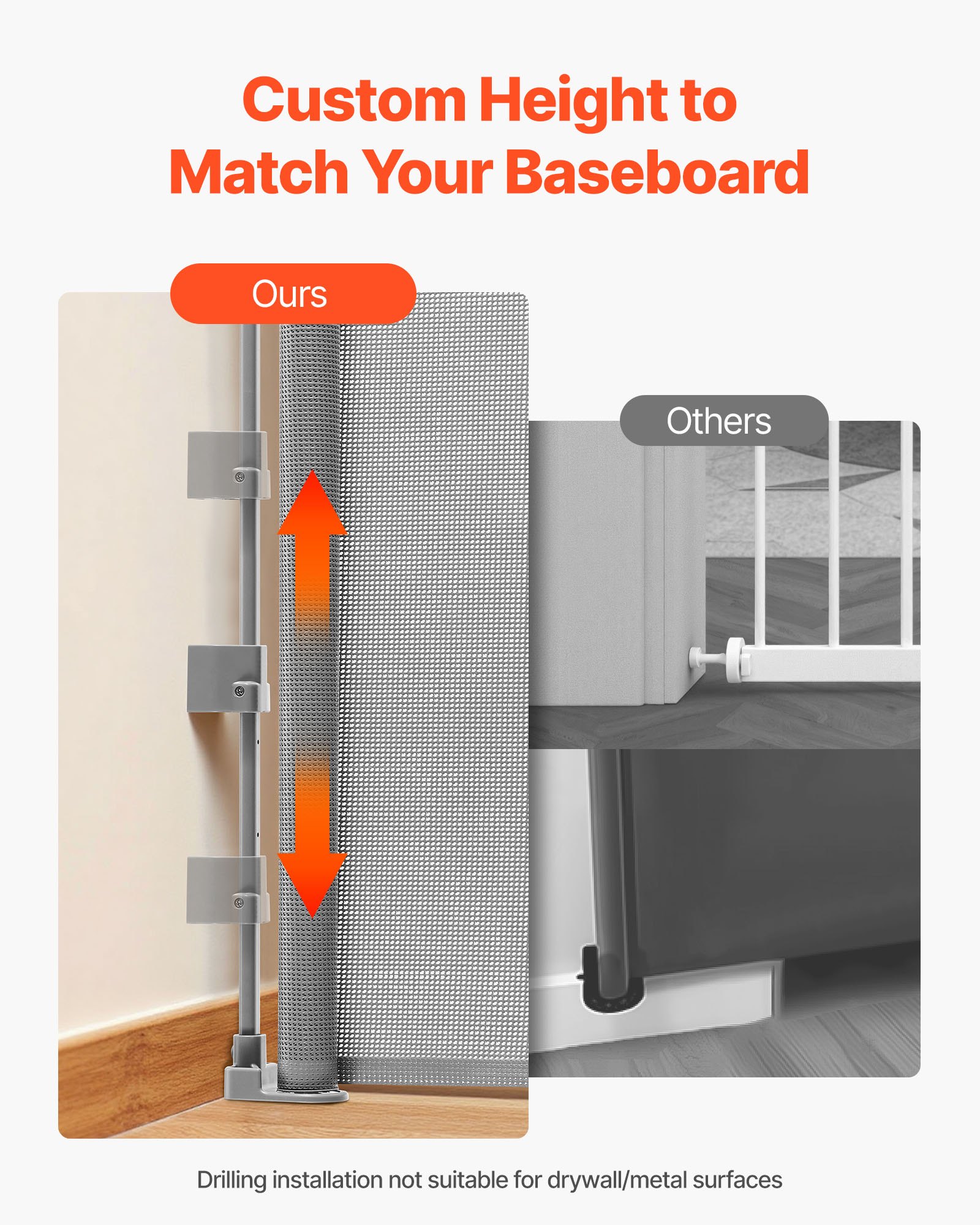 A: Yes, this gate requires drilling to securely install the brackets on both sides. It is not suitable for drywall or metal surfaces.