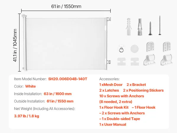 • Damage-Free Baseboard Fit: Lower brackets can be adjusted vertically, allowing the retractable dog gate to be mounted over baseboards without damage. All hardware is included for quick and easy installation