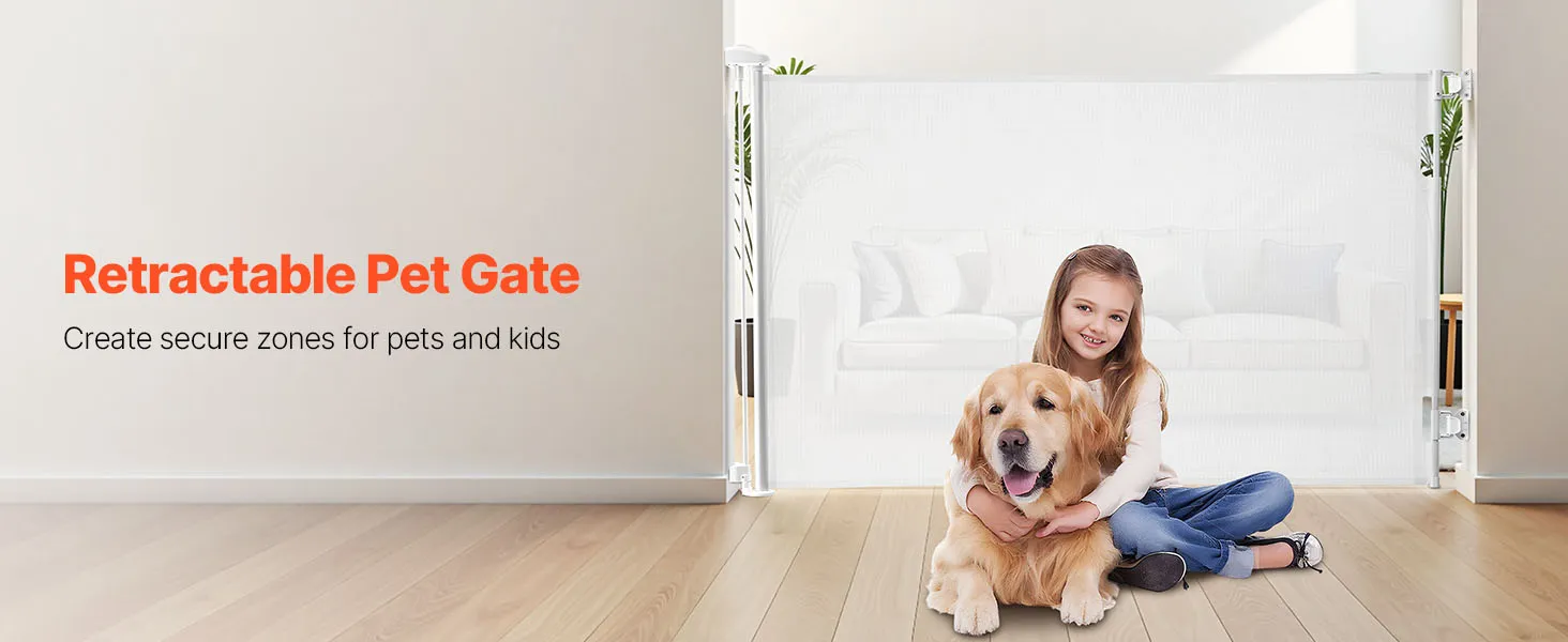 • Retractable & Clutter-Free: When retracted, the retractable pet gate disappears into its housing, keeping your space tidy and walkways fully open. Designed without a bottom threshold to reduce tripping and ensure secure daily use for kids and pets