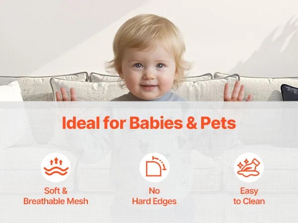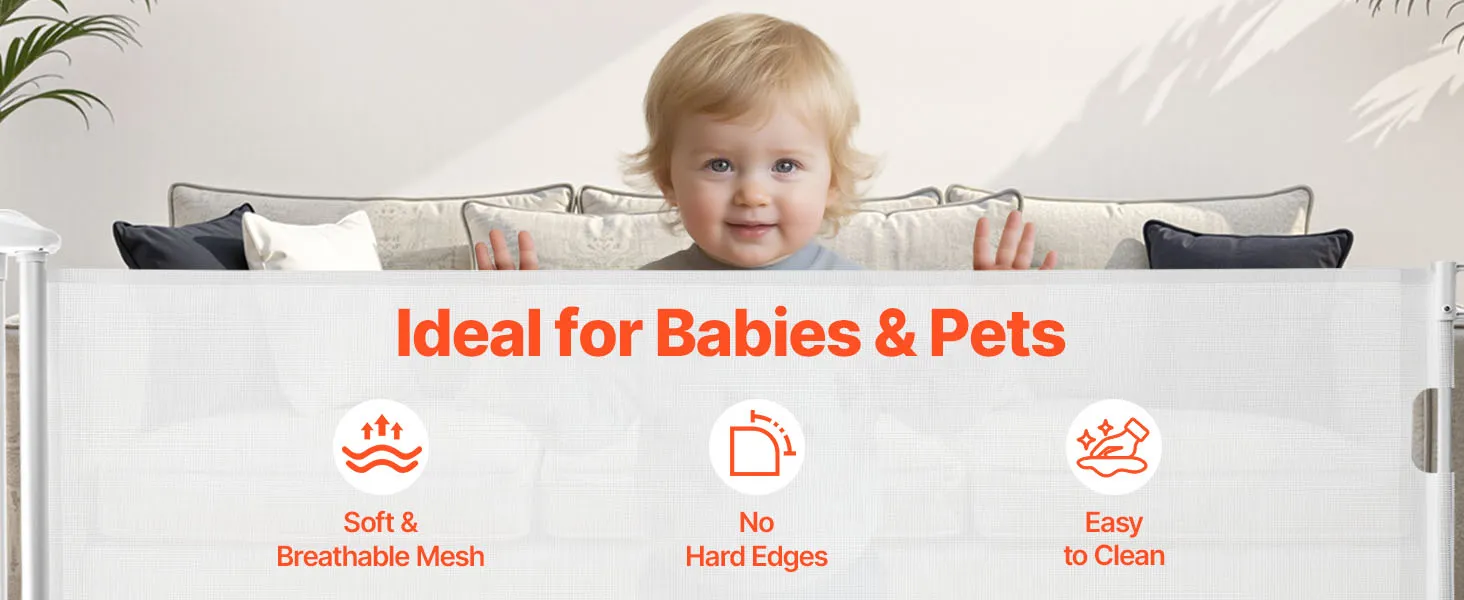 • Secure Separation Without Blocking View: The retractable gate is crafted from high-strength baby-grade PVC mesh that’s soft to the touch, breathable, and see-through, so you can monitor your baby or pet from a distance while creating a secure barrier