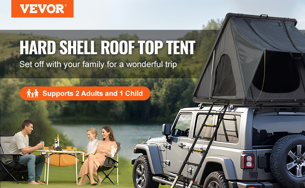 VEVOR Rooftop Tent Hard Shell, Naturnest Rooftop Tent Hardshell for 2-3 Person, Hard Shell Roof Top Tent with Telescopic Ladder Thick Mattress, Waterproof Windproof for Jeep SUV Van Pickup Truck