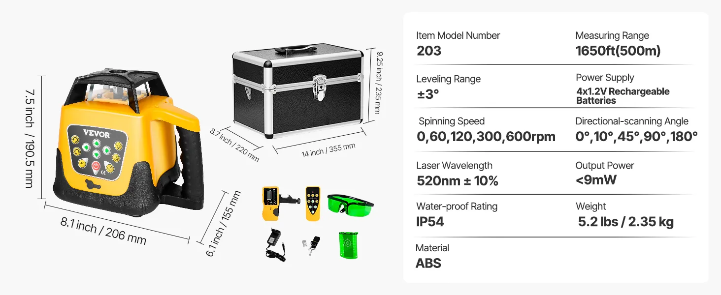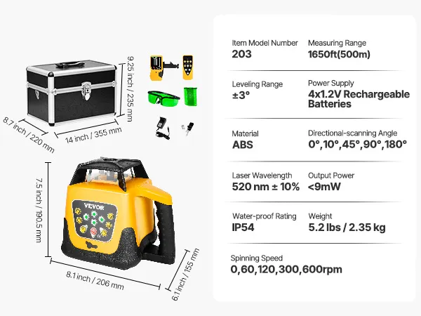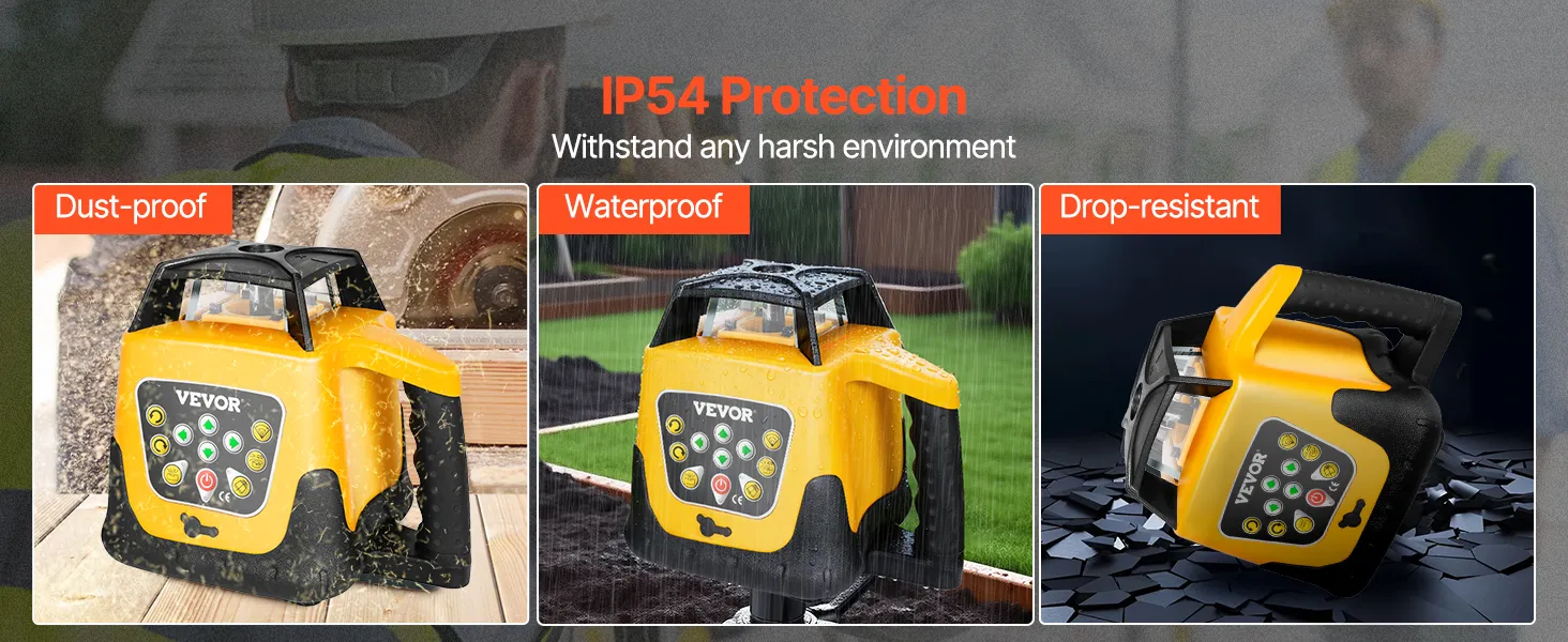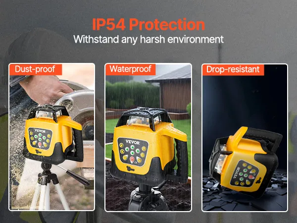 Built with industrial-grade plastic and high-quality metal, this self leveling laser level is dustproof and waterproof, rated IP54 for long-lasting durability.