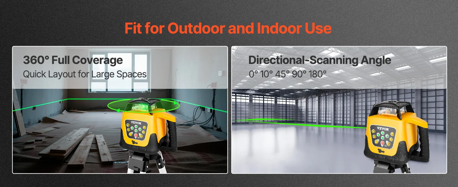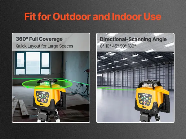 Supports horizontal and vertical scanning with high-visibility green grade laser lines, covering the entire work area, tough body, easy to operate, ideal laser transit tool for construction and renovation projects.