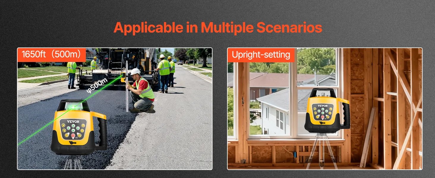 Ideal for construction, road maintenance, bridge building, elevator installation, and interior decoration, a must-have self leveling laser for various engineering and renovation projects.