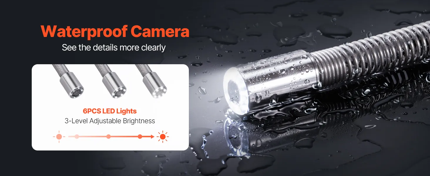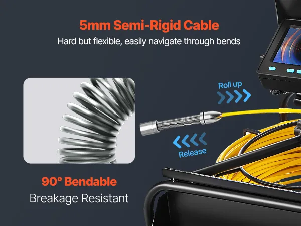 VEVOR's 5mm semi-rigid snake cable offers greater durability and smoother operation, effortlessly navigating through bends and making inspections more efficient. Plus, the handy cable reel keeps the cable neatly organized.