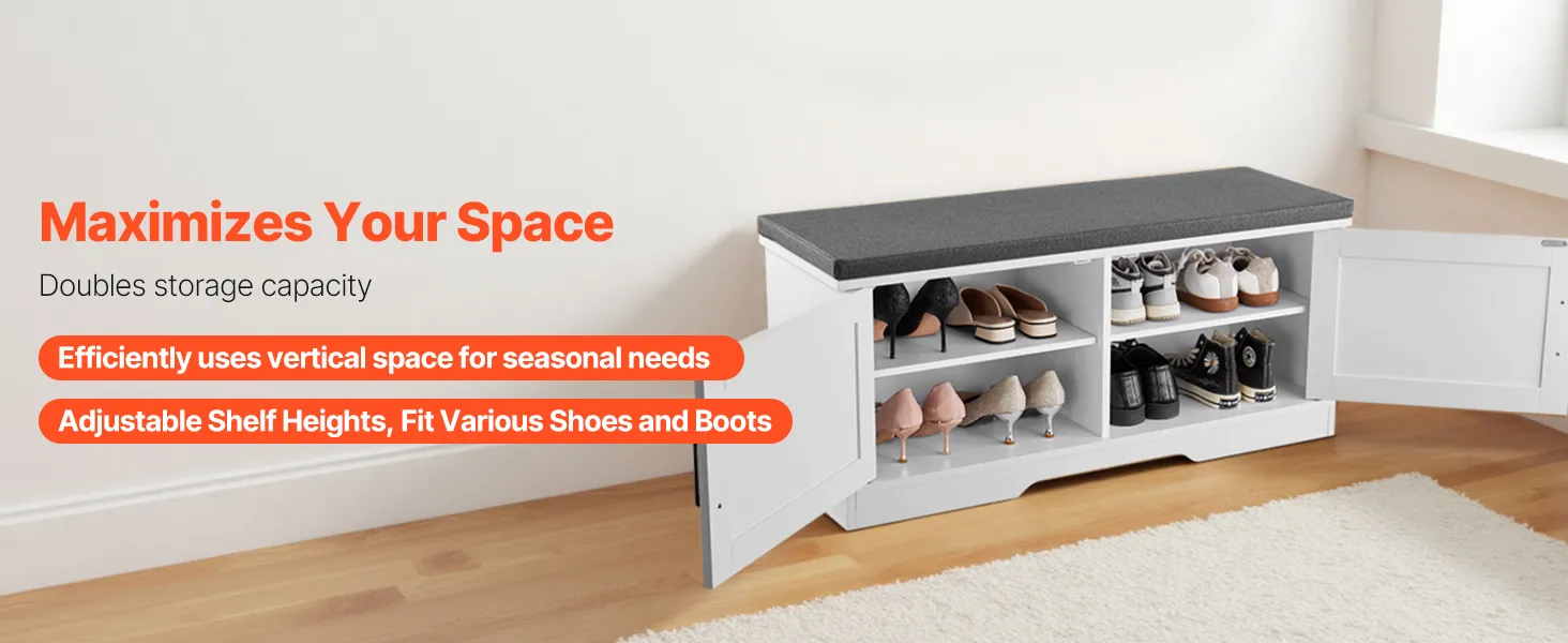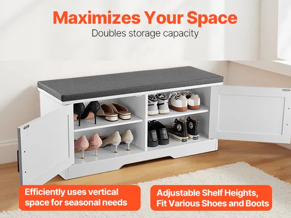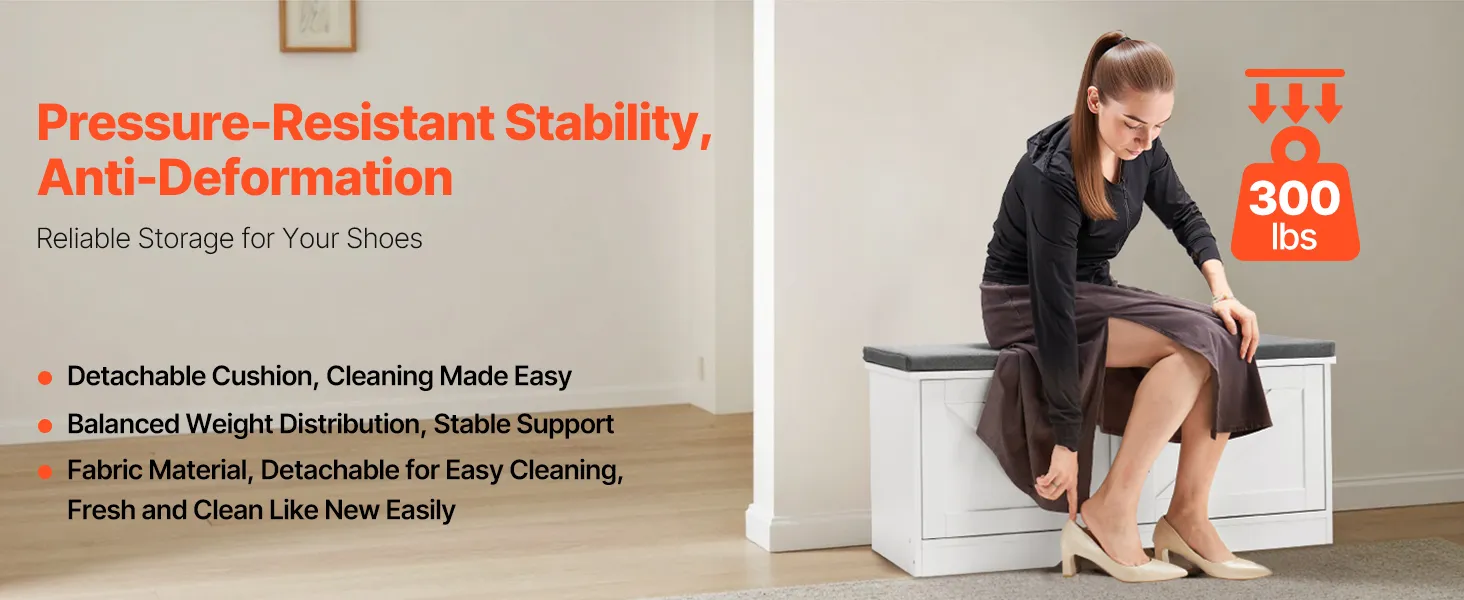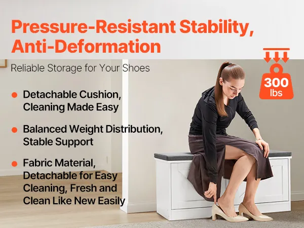 Our shoe rack bench has a strong, stable structure with excellent weight-bearing performance. It easily supports multiple people sitting to change shoes without deformation or damage, providing reliable and long-lasting support.