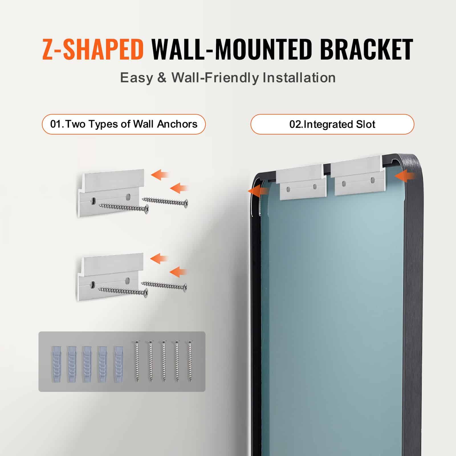 See seinale paigaldatud meik peegel on Z-kujuline seinale muudab paigaldus, vähendades vajadust eelnevalt puuritud augud või muret seina kahju. Vaid kaks lihtsat sammu, ei alustest kindlalt paigas.