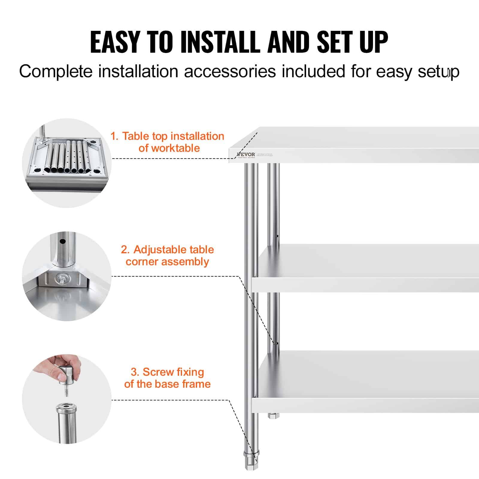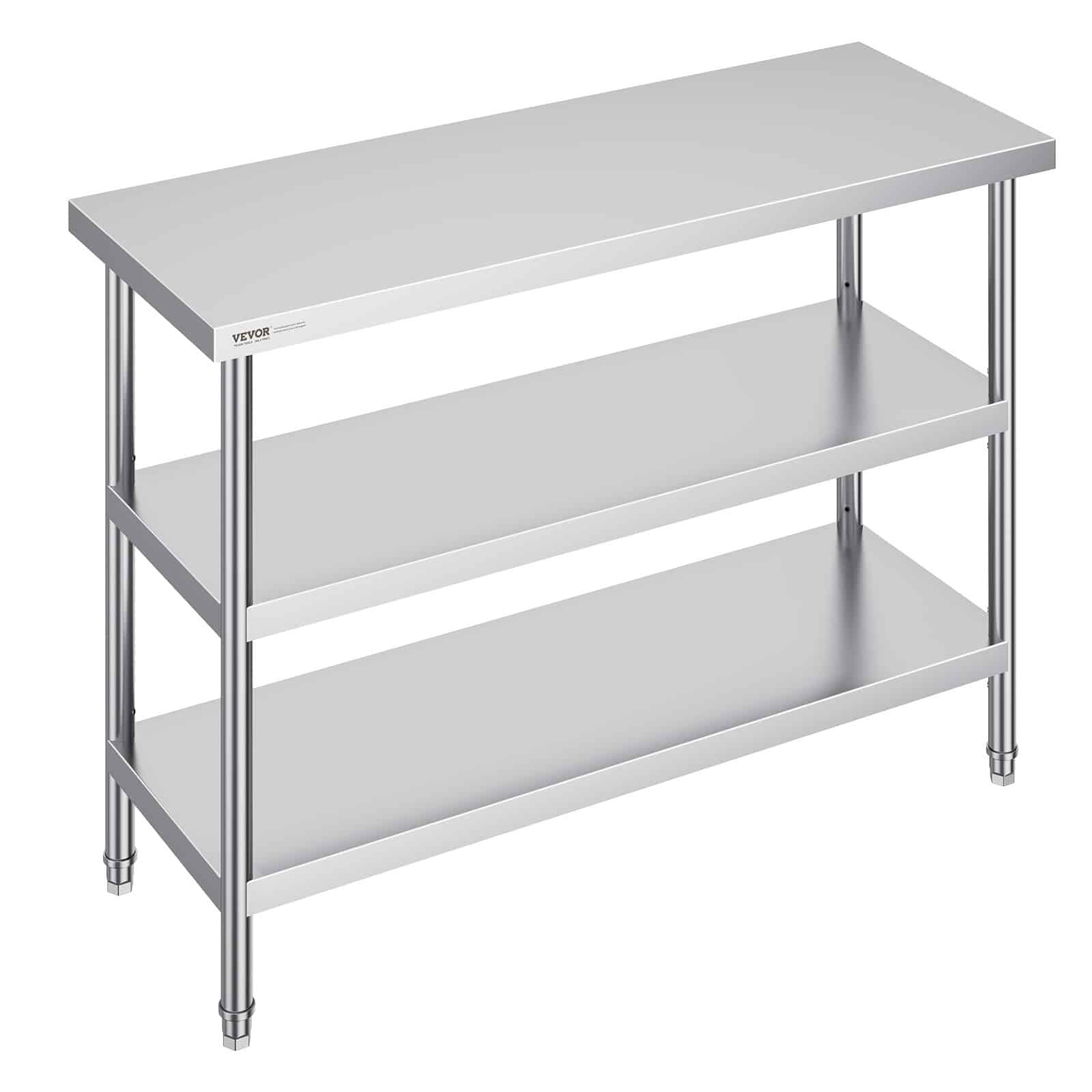 VEVOR Stainless Steel Food Prep Table Commercial Kitchen Work Table 45.7x121.9 cm