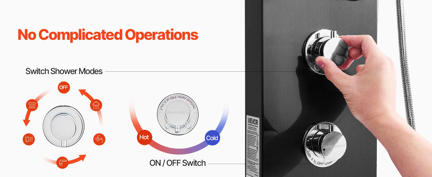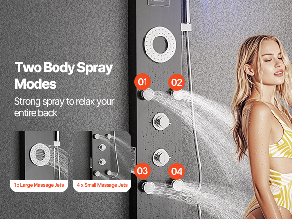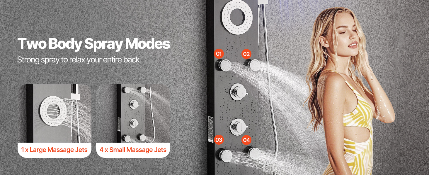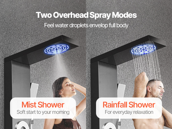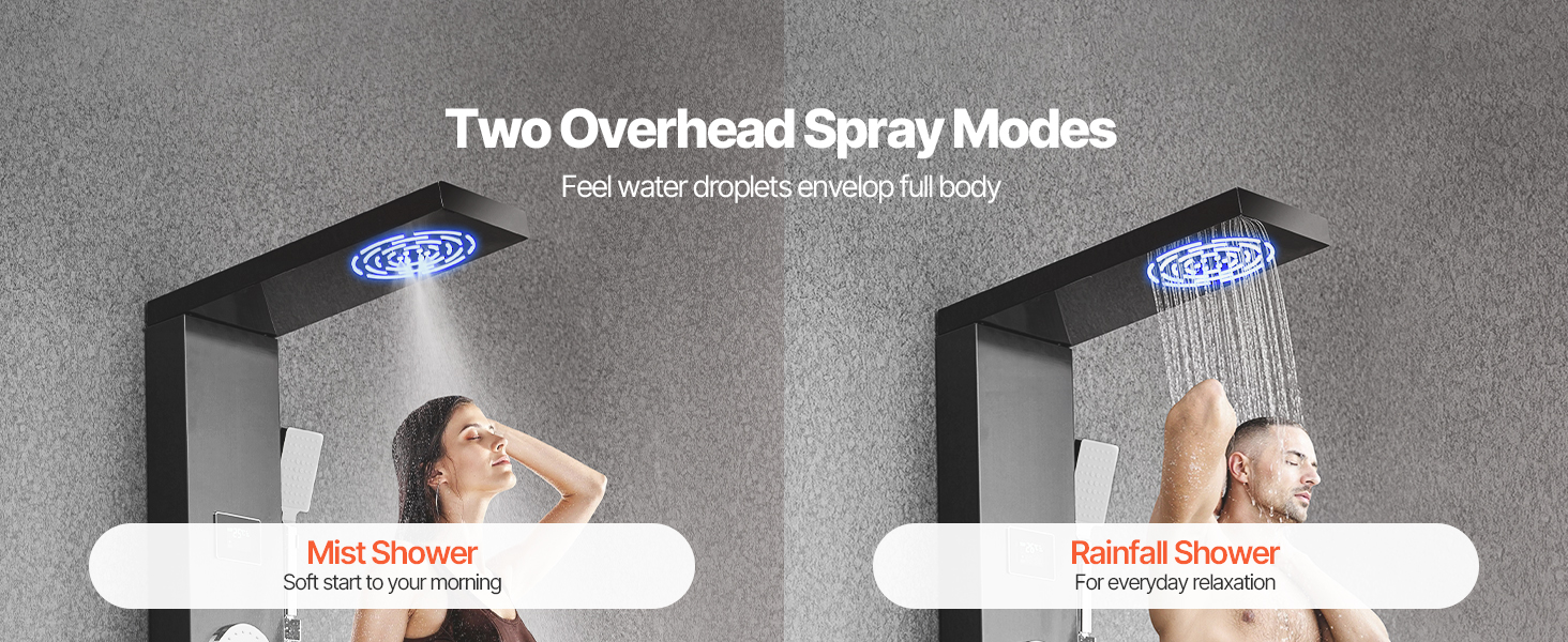 See, dušš paneel tower süsteem on multifunktsionaalne ja kohandatav, et see sobiks teie meeleolu ja vajadustele. Laienenud disain tagab suurema loodusliku vee voolu katvuse kui duši all.